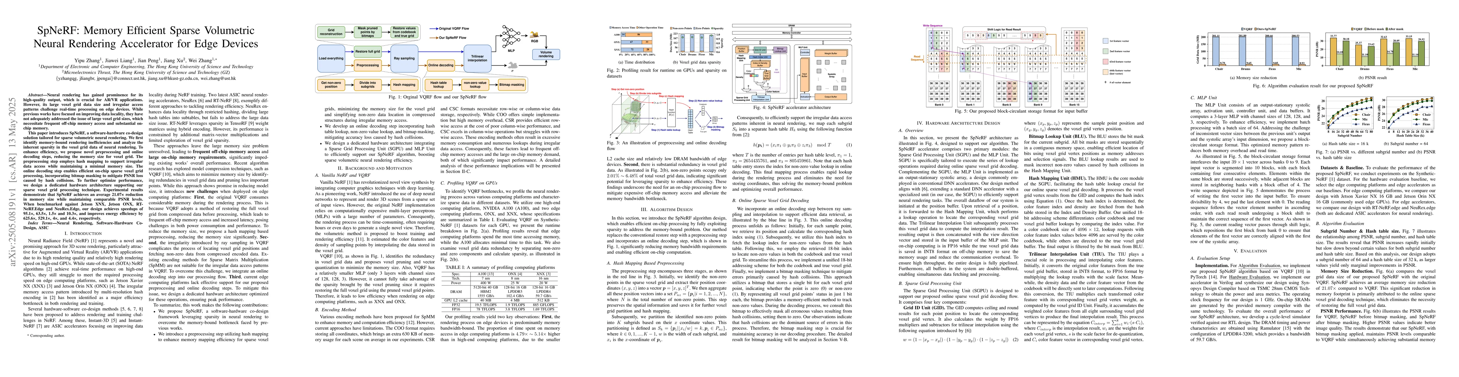 This research paper introduces SpNeRF, a software-hardware co-design solution that reduces memory size and improves performance for neural rendering on edge devices by 95.1x speedup and 625.6x energy efficiency improvement.