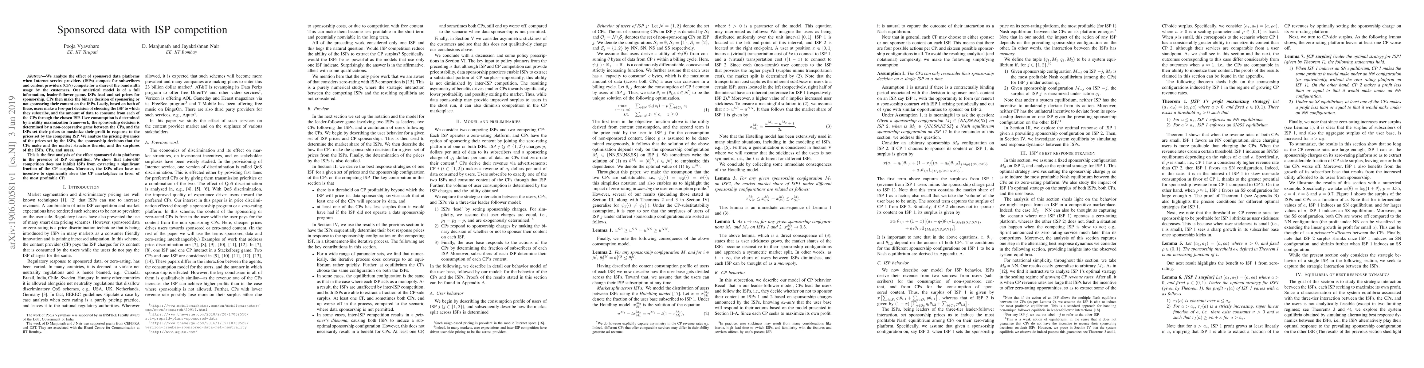 This paper examines the dynamics of sponsored data platforms amidst ISP competition, revealing that despite inter-ISP rivalry, ISPs can still extract substantial CP surplus. It finds ISPs often favor the most profitable content providers, skewing the marketplace.