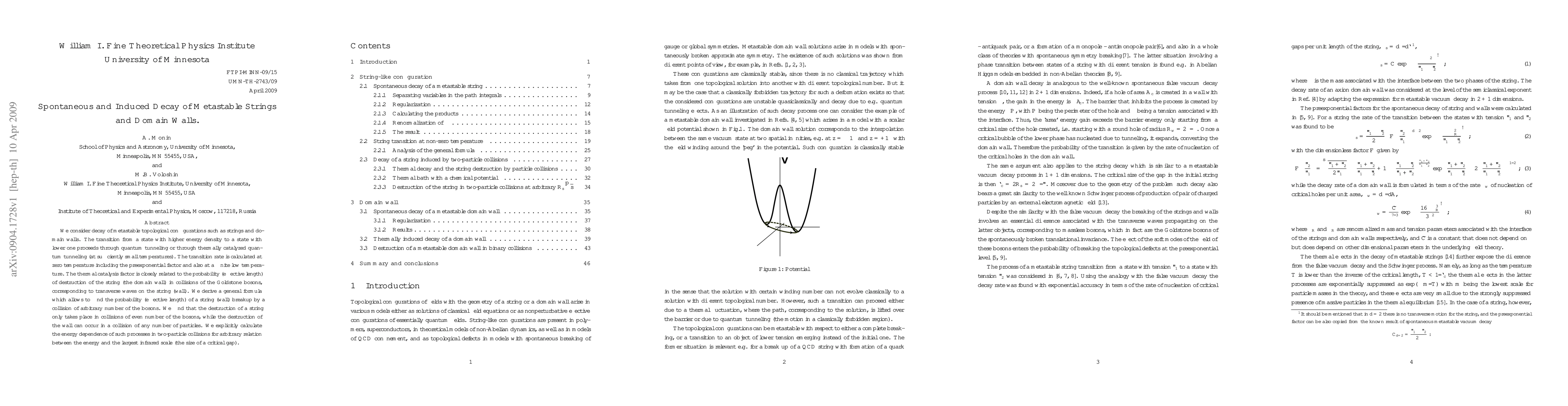 This paper investigates the decay mechanisms of metastable topological defects like strings and domain walls through quantum tunneling and thermally catalyzed processes. It derives a general formula for the probability of string or domain wall destruction via boson collisions, finding that string decay requires an even number of bosons, while domain walls can decay with any number.