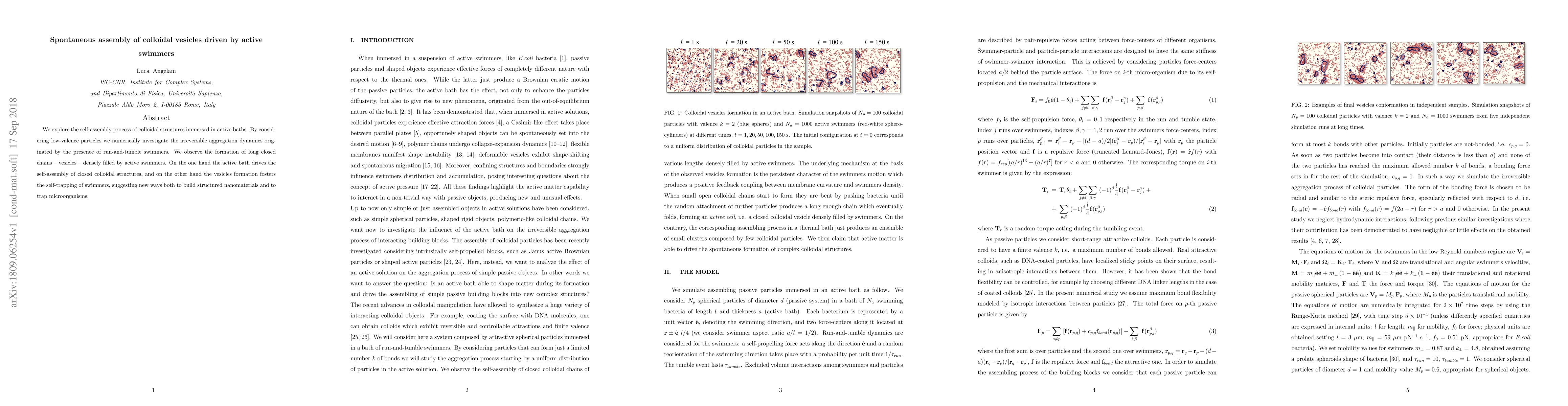 This paper investigates the self-assembly of colloidal vesicles driven by active swimmers in a fluid, revealing the formation of long closed chains filled with swimmers, and suggesting potential applications in nanomaterial construction and microorganism trapping.