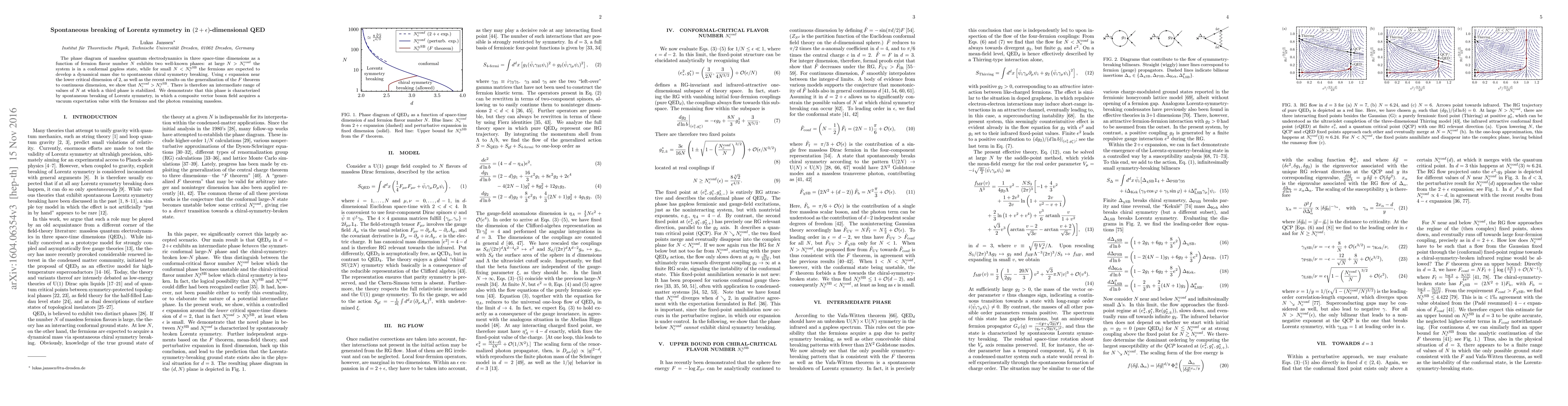 Researchers discover a new phase in quantum electrodynamics where Lorentz symmetry breaks spontaneously in 2+ε dimensions, with fermions gaining mass while photons remain massless.