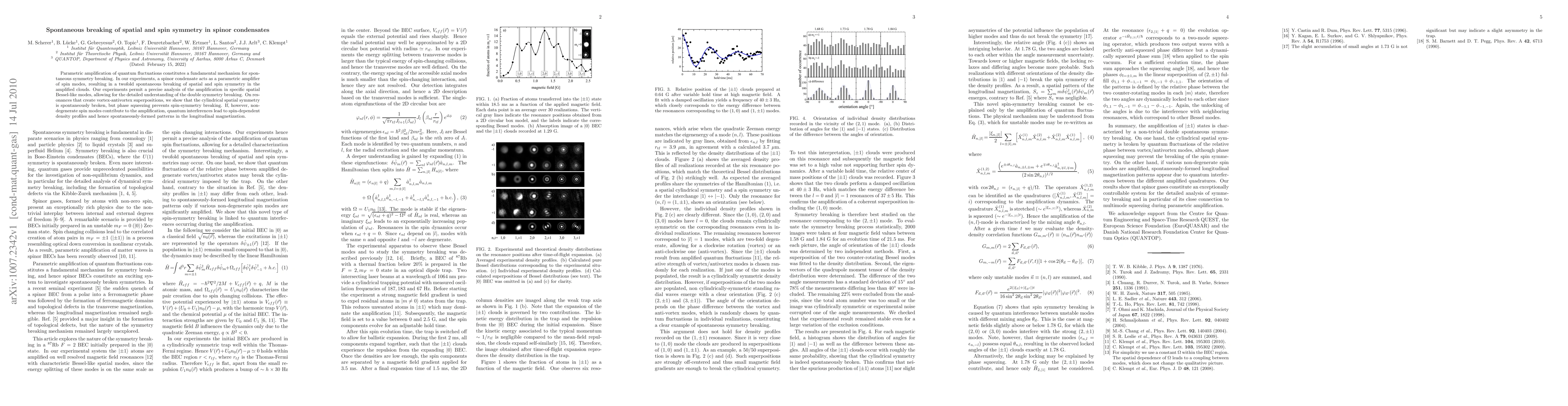 The paper presents a novel approach to studying symmetry breaking by leveraging a spinor condensate as a parametric amplifier of spin modes, enabling precise analysis of specific spatial Bessel-like modes.