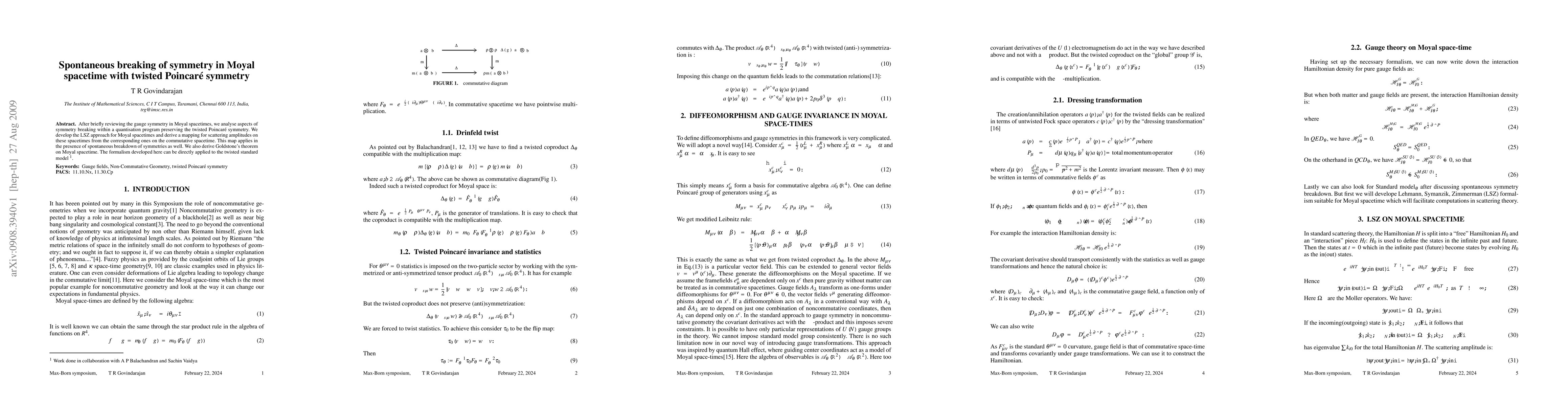 The paper presents a novel approach to symmetry breaking and scattering amplitude calculations in Moyal spacetime with twisted Poincaré symmetry, including a mapping of scattering amplitudes from commutative to noncommutative spacetimes and a derivation of Goldstone's theorem in this context.