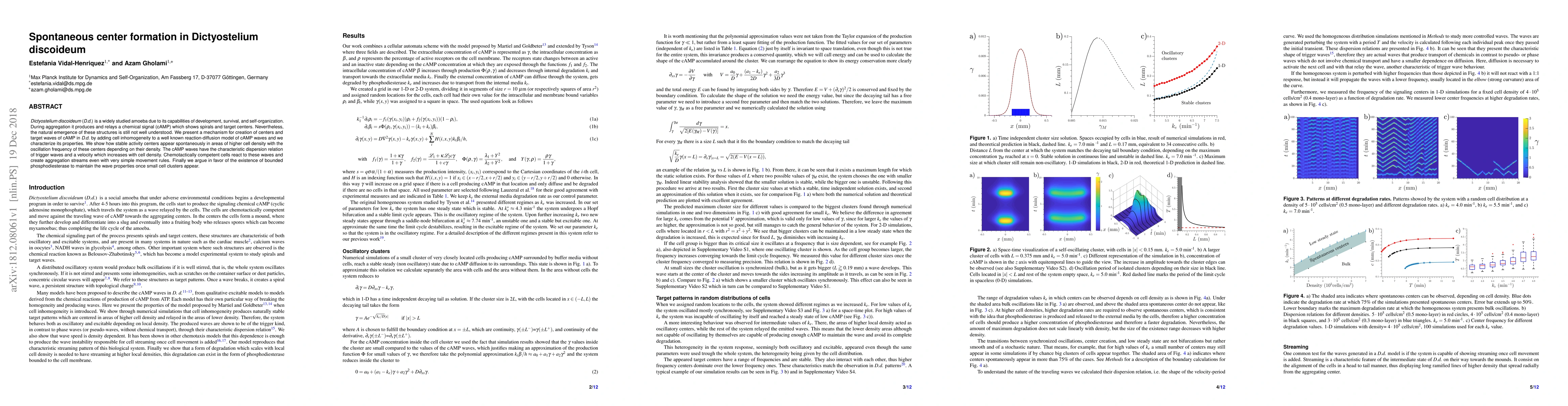 This study elucidates the spontaneous formation of stable activity centers and target waves of cAMP in Dictyostelium discoideum by introducing cell inhomogeneity into a reaction-diffusion model, demonstrating that higher cell densities lead to oscillation frequency-dependent centers and chemotactically guided aggregation streams.