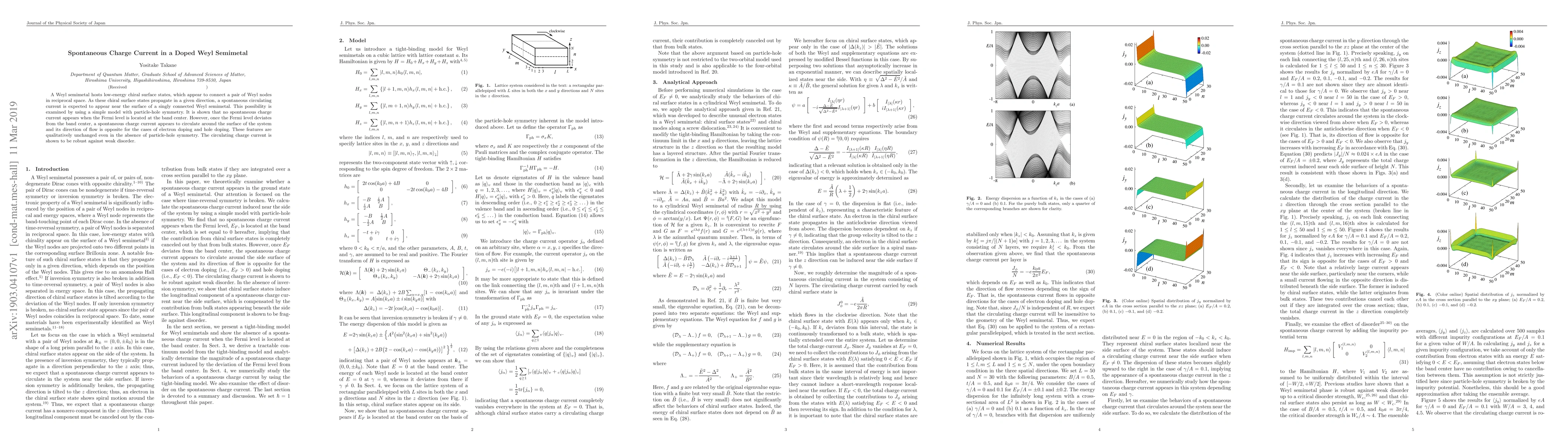 A Weyl semimetal hosts low-energy chiral surface states, which appear to connect a pair of Weyl nodes in reciprocal space. As these chiral surface states propagate in a given direction, a spontaneous circulating current is expected to appear near the surface of a singly connected Weyl semimetal. This possibility is examined by using a simple model with particle-hole symmetry. It is shown that no spontaneous charge current appears when the Fermi level is located at the band center. However, once the Fermi level deviates from the band center, a spontaneous charge current appears to circulate around the surface of the system and its direction of flow is opposite for the cases of electron doping and hole doping. These features are qualitatively unchanged even in the absence of particle-hole symmetry. The circulating charge current is shown to be robust against weak disorder.