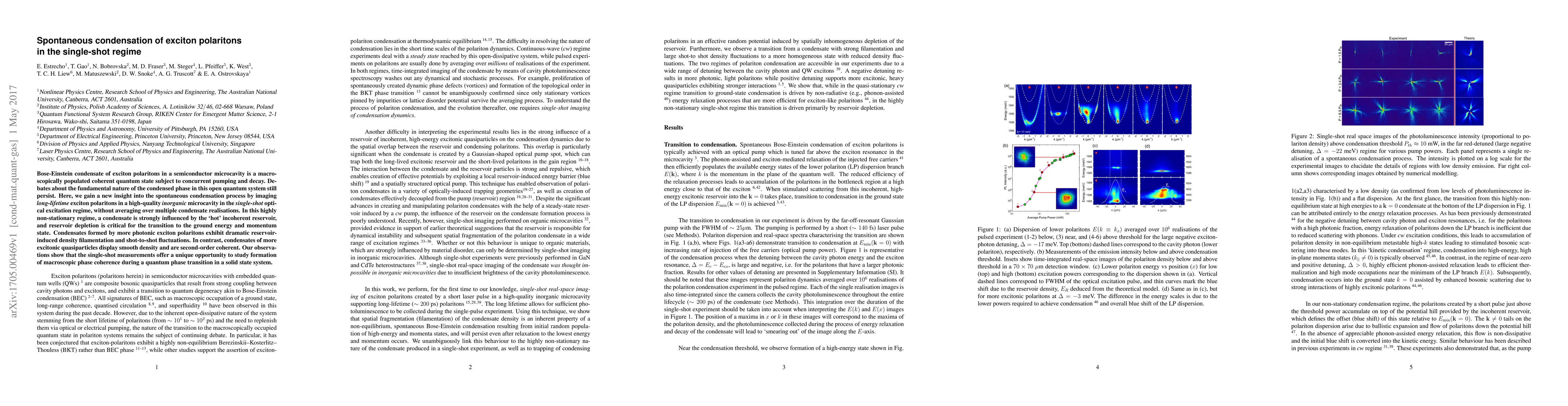This research investigates the spontaneous condensation of exciton polaritons in a semiconductor microcavity, revealing that condensates formed from more photonic polaritons exhibit density filamentation and shot-to-shot fluctuations, while those from more excitonic quasiparticles are smooth and second-order coherent, providing insight into quantum phase transitions in solid-state systems through single-shot optical excitation.