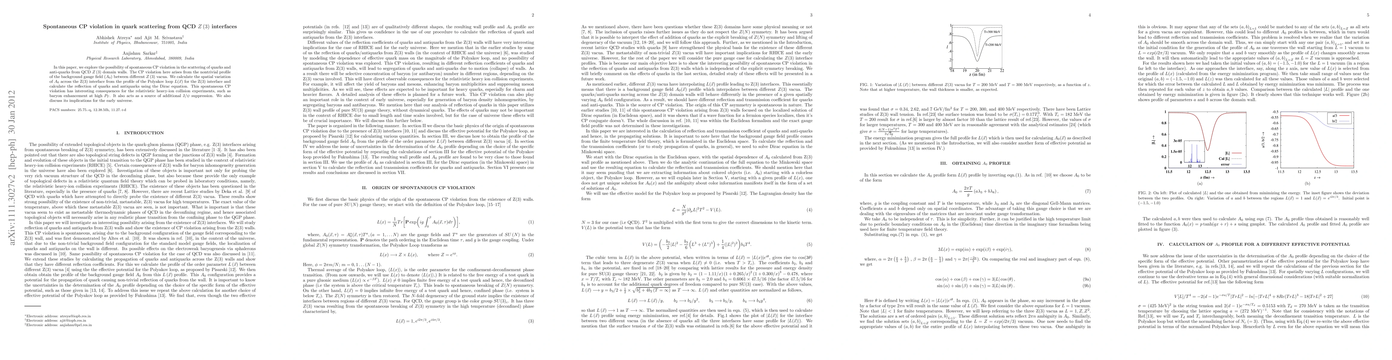 This paper investigates spontaneous CP violation in quark scattering from QCD Z(3) domain walls, attributing it to the nontrivial gauge field profile between different Z(3) vacua. The study finds implications for high-energy heavy-ion collisions and early universe cosmology.