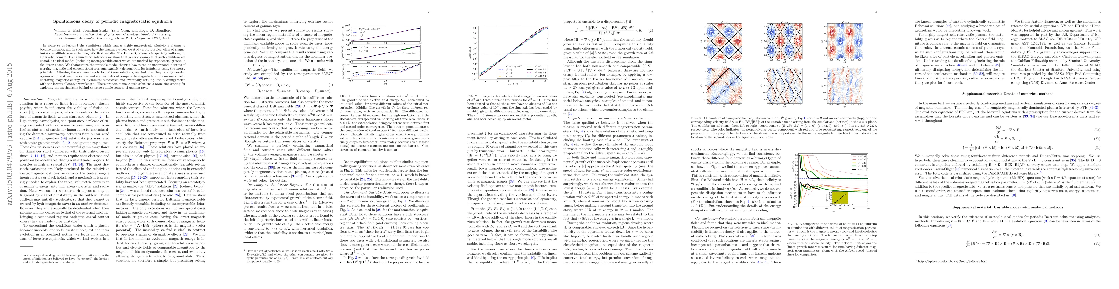 In order to understand the conditions which lead a highly magnetized, relativistic plasma to become unstable, and in such cases how the plasma evolves, we study a prototypical class of magnetostatic equilibria where the magnetic field satisfies $\nabla \times\mathbf B = \alpha \mathbf B$, where $\alpha$ is spatially uniform, on a periodic domain. Using numerical solutions we show that generic examples of such equilibria are unstable to ideal modes (including incompressible ones) which are marked by exponential growth in the linear phase. We characterize the unstable mode, showing how it can be understood in terms of merging magnetic and current structures, and explicitly demonstrate its instability using the energy principle. Following the nonlinear evolution of these solutions, we find that they rapidly develop regions with relativistic velocities and electric fields of comparable magnitude to the magnetic field, liberating magnetic energy on dynamical timescales and eventually settling into a configuration with the largest allowable wavelength. These properties make such solutions a promising setting for exploring the mechanisms behind extreme cosmic sources of gamma rays.