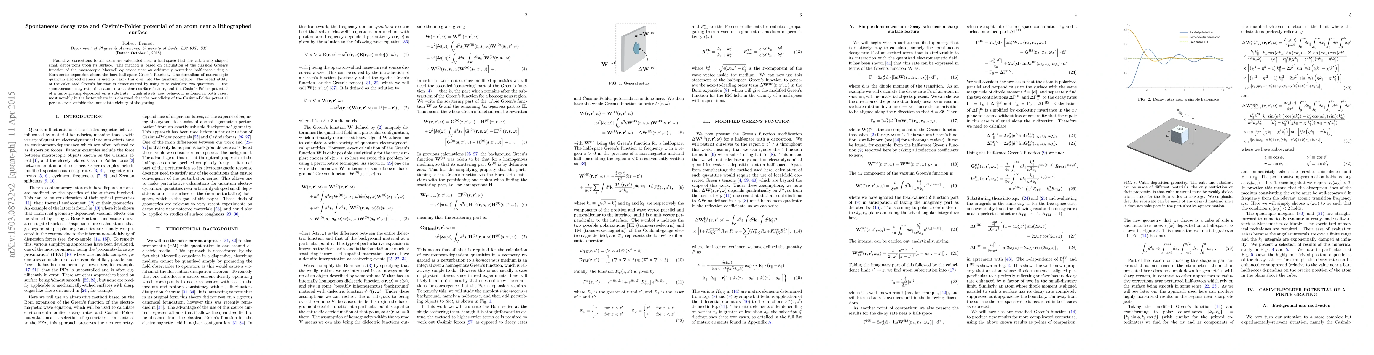 Radiative corrections to an atom are calculated near a half-space that has arbitrarily-shaped small depositions upon its surface. The method is based on calculation of the classical Green's function of the macroscopic Maxwell equations near an arbitrarily perturbed half-space using a Born series expansion about the bare half-space Green's function. The formalism of macroscopic quantum electrodynamics is used to carry this over into the quantum picture. The broad utility of the calculated Green's function is demonstrated by using it to calculate two quantities --- the spontaneous decay rate of an atom near a sharp surface feature, and the Casimir-Polder potential of a finite grating deposited on a substrate. Qualitatively new behaviour is found in both cases, most notably in the latter where it is observed that the periodicity of the Casimir-Polder potential persists even outside the immediate vicinity of the grating.