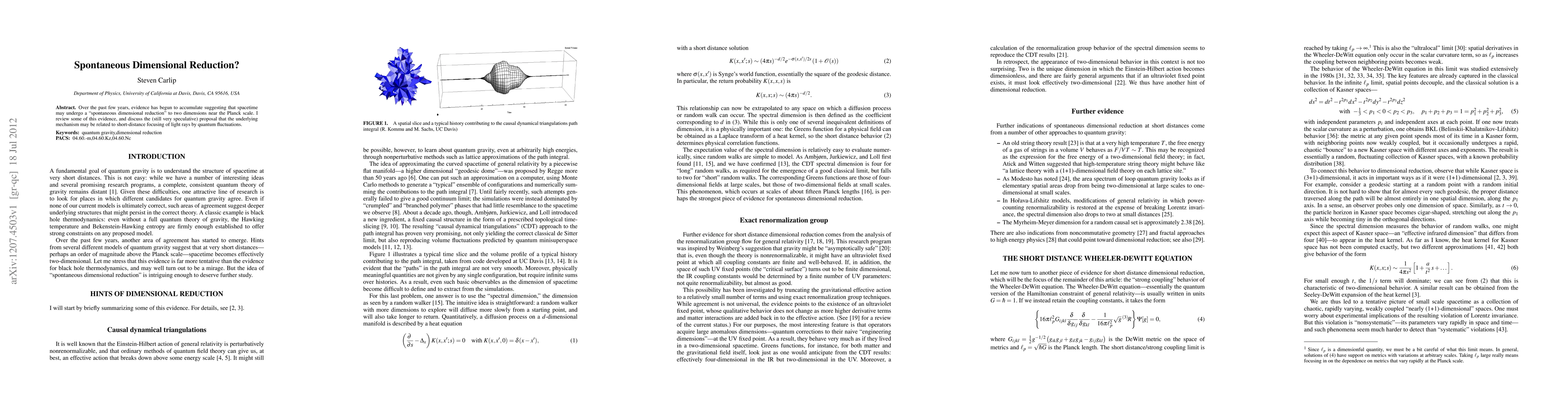 This paper reviews emerging evidence suggesting spacetime may spontaneously reduce to two dimensions near the Planck scale, proposing that quantum fluctuations could be the underlying mechanism for this dimensional reduction. The idea remains highly speculative.