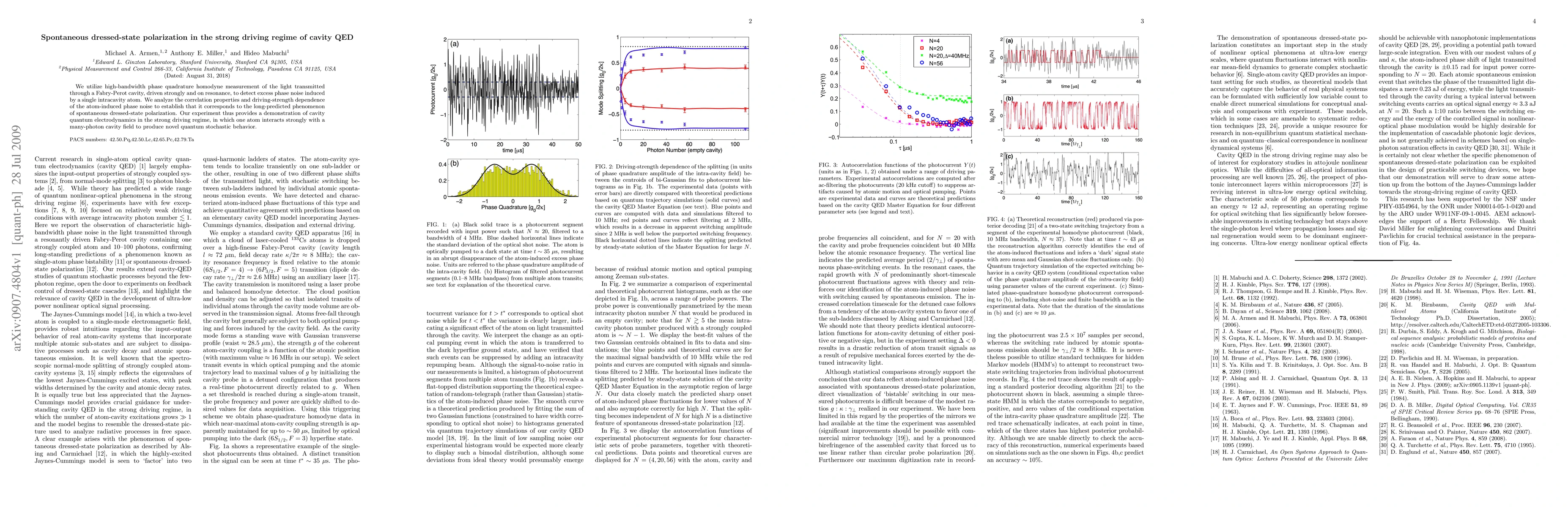 We utilize high-bandwidth phase quadrature homodyne measurement of the light transmitted through a Fabry-Perot cavity, driven strongly and on resonance, to detect excess phase noise induced by a single intracavity atom. We analyze the correlation properties and driving-strength dependence of the atom-induced phase noise to establish that it corresponds to the long-predicted phenomenon of spontaneous dressed-state polarization. Our experiment thus provides a demonstration of cavity quantum electrodynamics in the strong driving regime, in which one atom interacts strongly with a many-photon cavity field to produce novel quantum stochastic behavior.