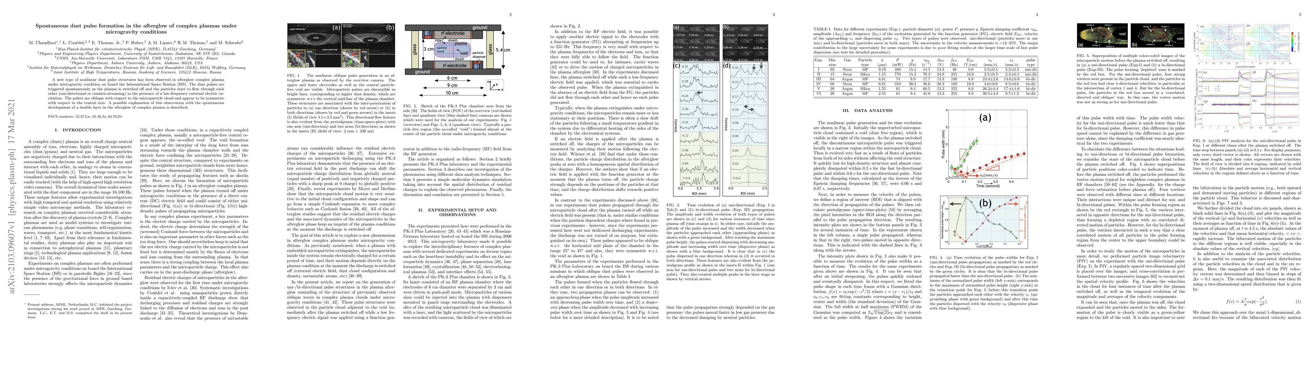 Researchers observed spontaneous dust pulse structures in afterglow complex plasma under microgravity on the ISS, triggered by low-frequency electric excitation, with possible explanation of double layer development.