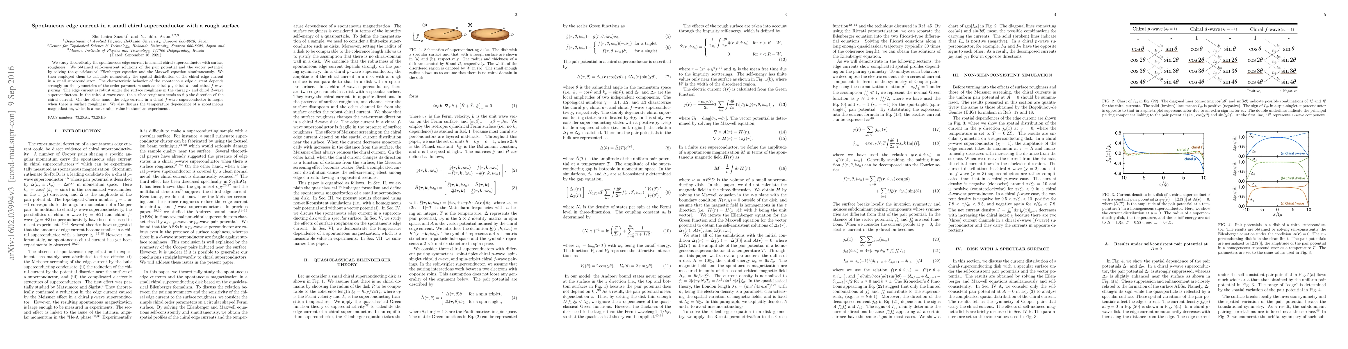 This paper investigates the spontaneous edge current in small chiral superconductors with surface roughness, revealing that the edge current's behavior is strongly dependent on the symmetries of the order parameters, with robustness in chiral $p$- and $d$-wave superconductors and fragility in chiral $f$-wave superconductors under roughness. The study also examines the temperature dependence of spontaneous magnetization.