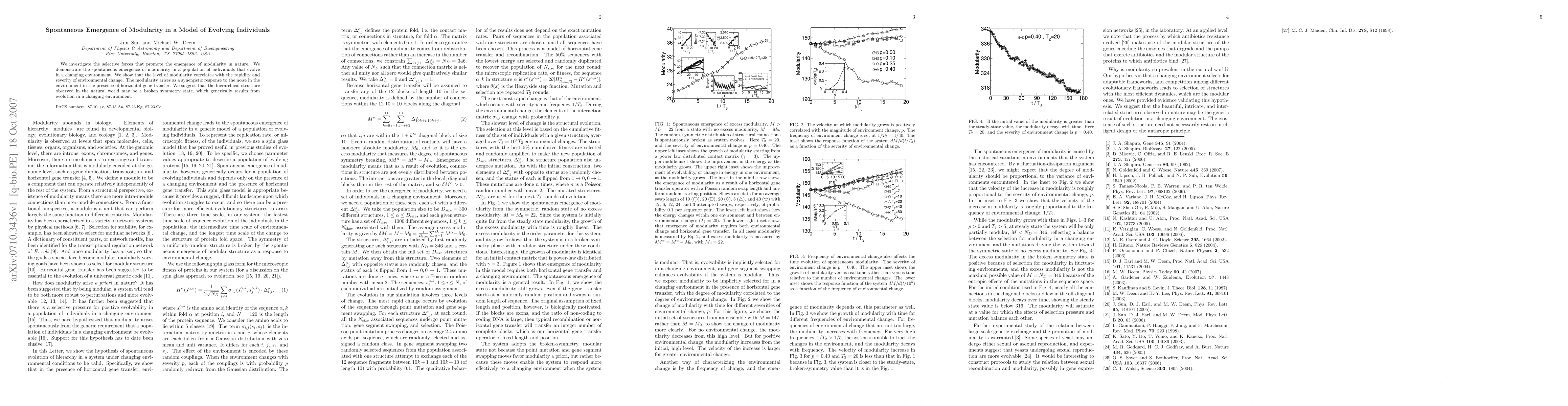 This paper explores how modularity spontaneously emerges in a population of evolving individuals under changing environmental conditions, showing that increased environmental noise and rapid changes promote modularity, likely due to horizontal gene transfer. The findings suggest that hierarchical structures in nature may arise from evolutionary processes in dynamic environments.