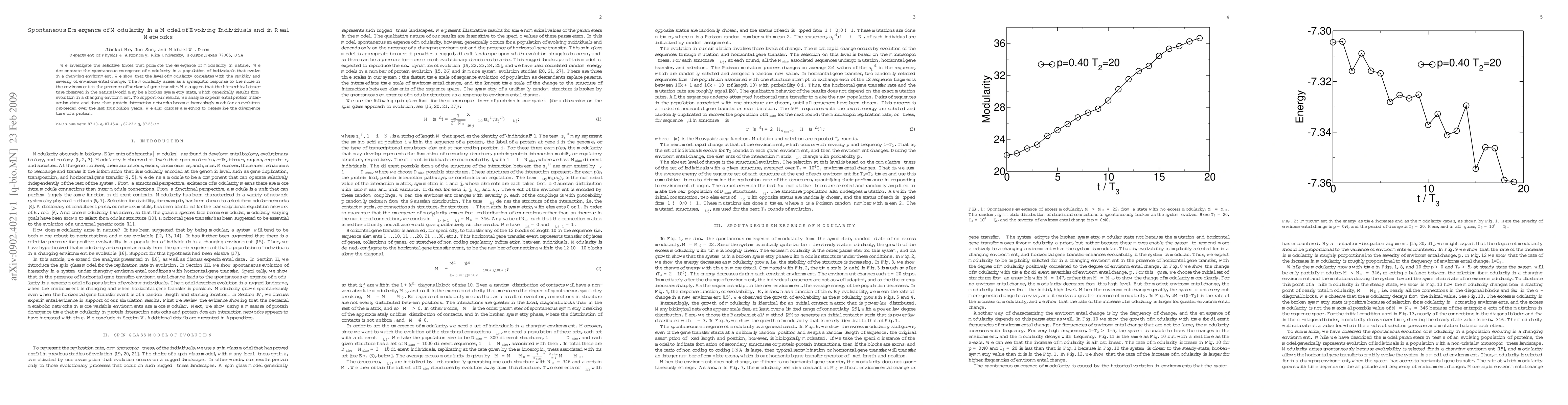 This paper explores the spontaneous emergence of modularity in evolving populations and real networks, demonstrating that rapid environmental changes drive the development of modular structures. The study supports these findings using protein interaction data, showing that modularity has increased over billions of years of evolution.