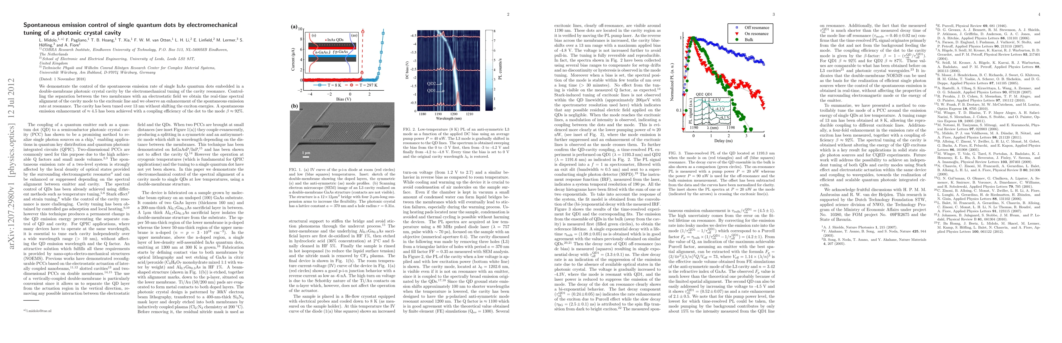 This paper demonstrates control over the spontaneous emission rate of single InAs quantum dots in a photonic crystal cavity through electromechanical tuning. By adjusting the electrostatic field to vary the cavity mode alignment with the excitonic line, a 4.5-fold enhancement in emission rate was achieved, showcasing a coupling efficiency of 92%.