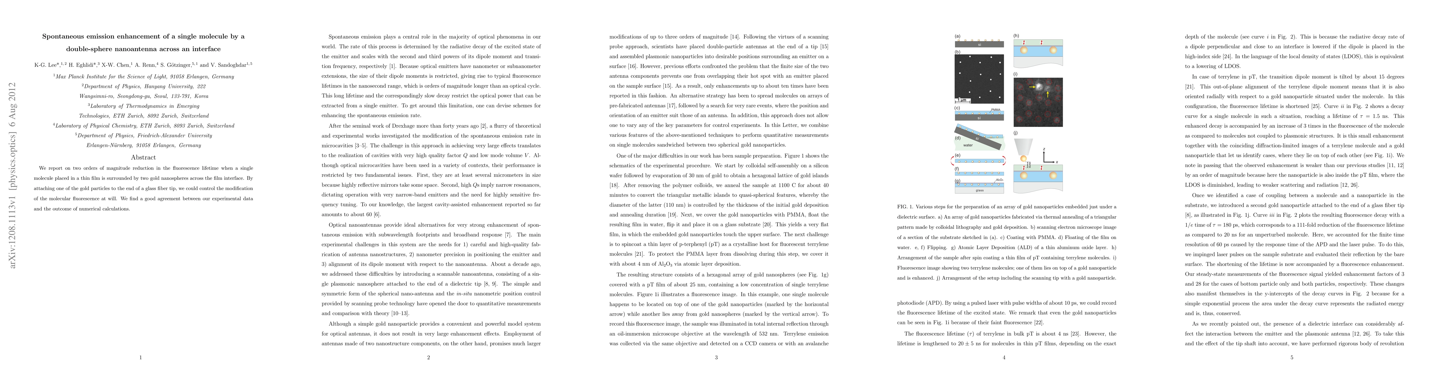 Researchers found that two gold nanospheres surrounding a single molecule across an interface can reduce its fluorescence lifetime by two orders of magnitude, allowing for controlled modification of molecular fluorescence.