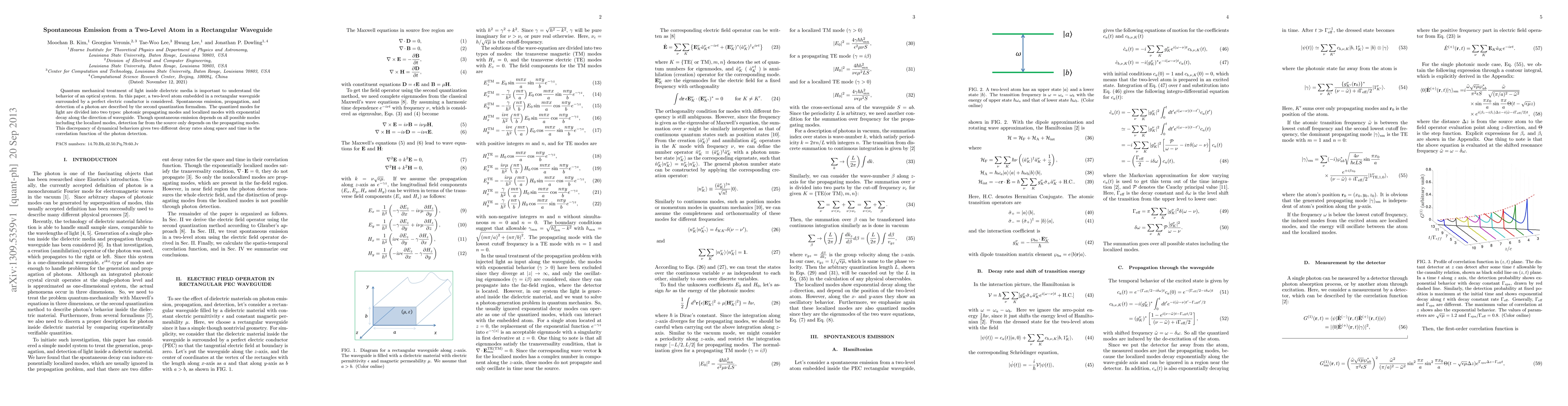 This paper investigates the quantum mechanical behavior of a two-level atom within a rectangular waveguide, focusing on spontaneous emission and photon detection. It reveals distinct decay rates for photon detection due to the differing dynamical behaviors of propagating and localized photonic modes.