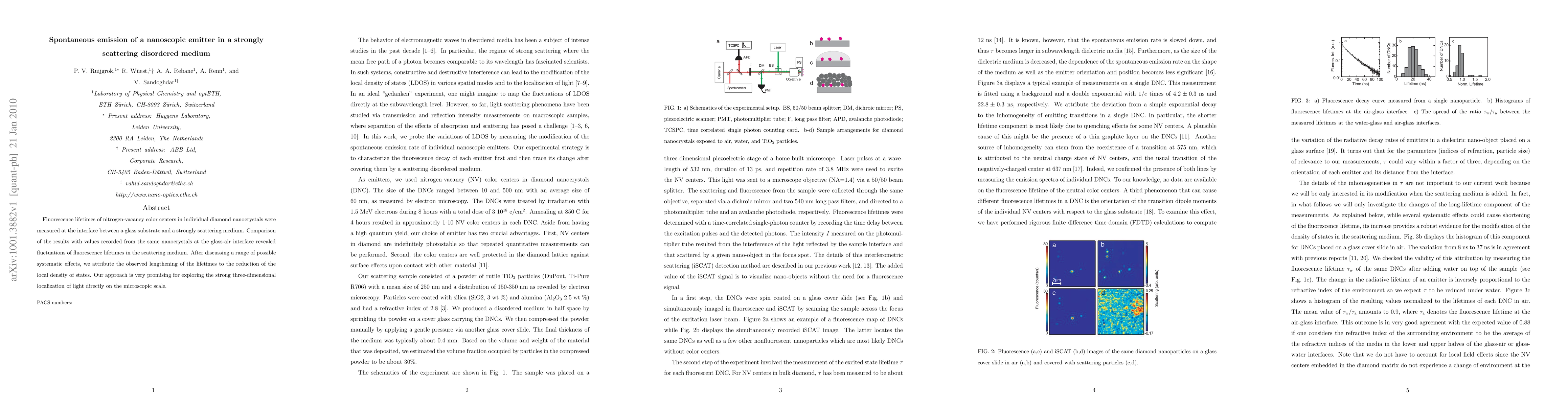 Fluorescence lifetimes of nitrogen-vacancy color centers in individual diamond nanocrystals were measured at the interface between a glass substrate and a strongly scattering medium. Comparison of the results with values recorded from the same nanocrystals at the glass-air interface revealed fluctuations of fluorescence lifetimes in the scattering medium. After discussing a range of possible systematic effects, we attribute the observed lengthening of the lifetimes to the reduction of the local density of states. Our approach is very promising for exploring the strong three-dimensional localization of light directly on the microscopic scale.