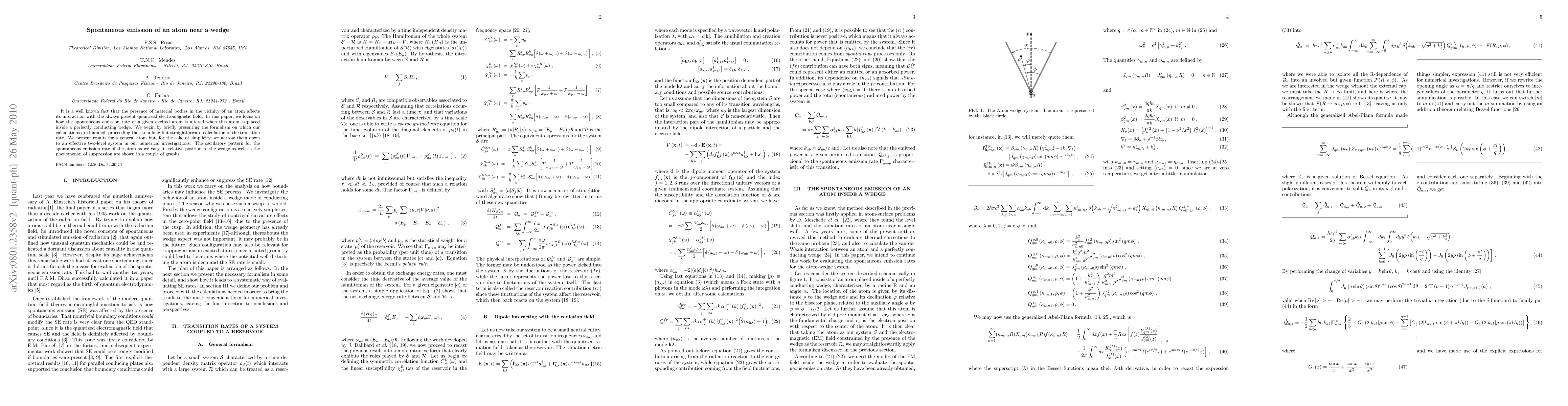 This paper investigates how the spontaneous emission rate of an excited atom changes when situated near a perfectly conducting wedge, using a formalism based on non-trivial boundary conditions. Numerical results for an effective two-level system confirm the physical soundness of the calculated transition rate alterations.