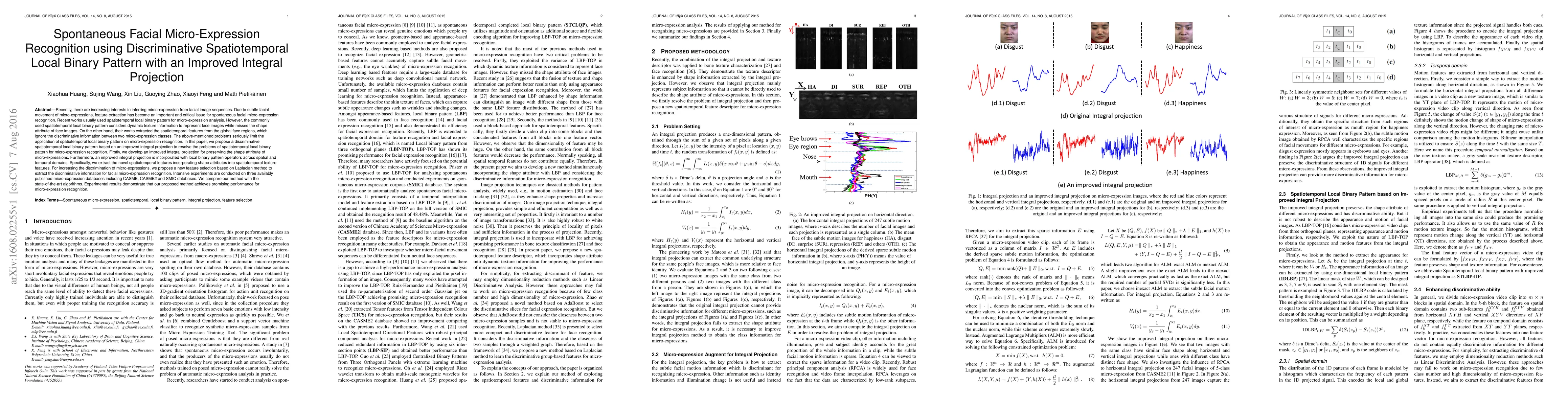 This paper proposes a novel discriminative spatiotemporal local binary pattern with an improved integral projection for recognizing spontaneous facial micro-expressions. The method incorporates shape attributes and discriminative features to enhance recognition accuracy, outperforming state-of-the-art algorithms in experiments on three micro-expression databases.