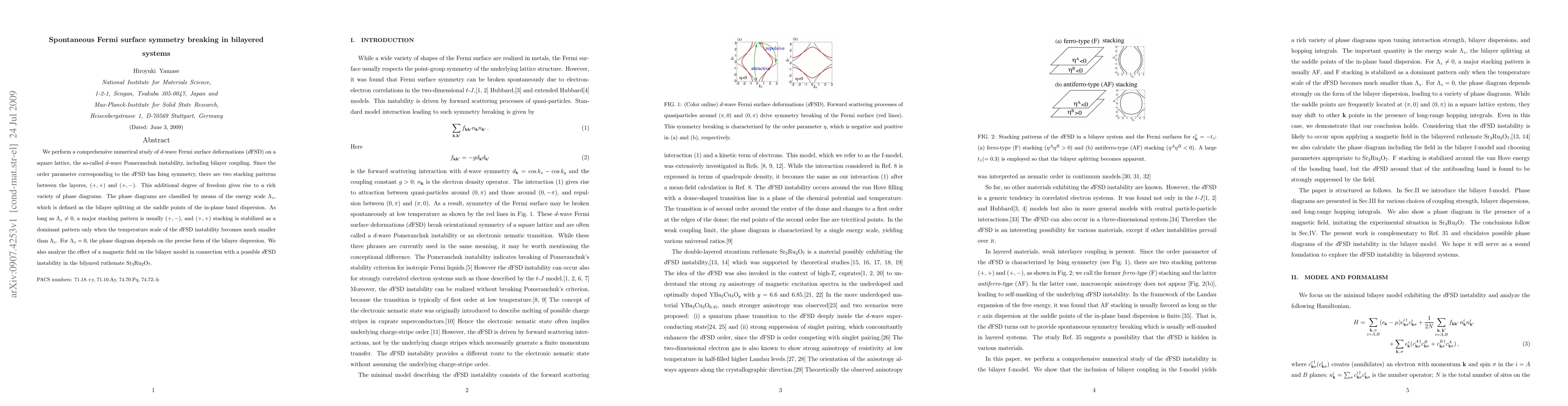 We perform a comprehensive numerical study of d-wave Fermi surface deformations (dFSD) on a square lattice, the so-called d-wave Pomeranchuk instability, including bilayer coupling. Since the order parameter corresponding to the dFSD has Ising symmetry, there are two stacking patterns between the layeres, (+,+) and (+,-). This additional degree of freedom gives rise to a rich variety of phase diagrams. The phase diagrams are classified by means of the energy scale Lambda_{z}, which is defined as the bilayer splitting at the saddle points of the in-plane band dispersion. As long as Lambda_{z} ne 0, a major stacking pattern is usually (+,-), and (+,+) stacking is stabilized as a dominant pattern only when the temperature scale of the dFSD instability becomes much smaller than Lambda_z. For Lambda_{z}=0, the phase diagram depends on the precise form of the bilayer dispersion. We also analyze the effect of a magnetic field on the bilayer model in connection with a possible dFSD instability in the bilyared ruthenate Sr_3Ru_2O_7.