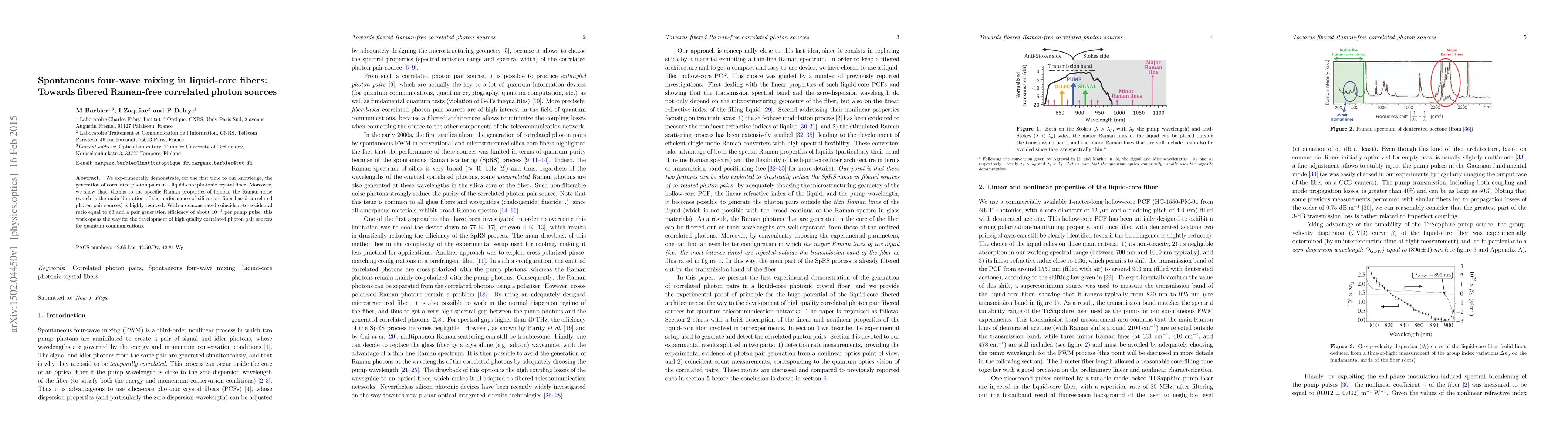 This paper demonstrates the first generation of correlated photon pairs in liquid-core photonic crystal fibers, significantly reducing Raman noise compared to silica-core fibers. The achieved high coincident-to-accidental ratio and pair generation efficiency pave the way for advanced quantum communication technologies.