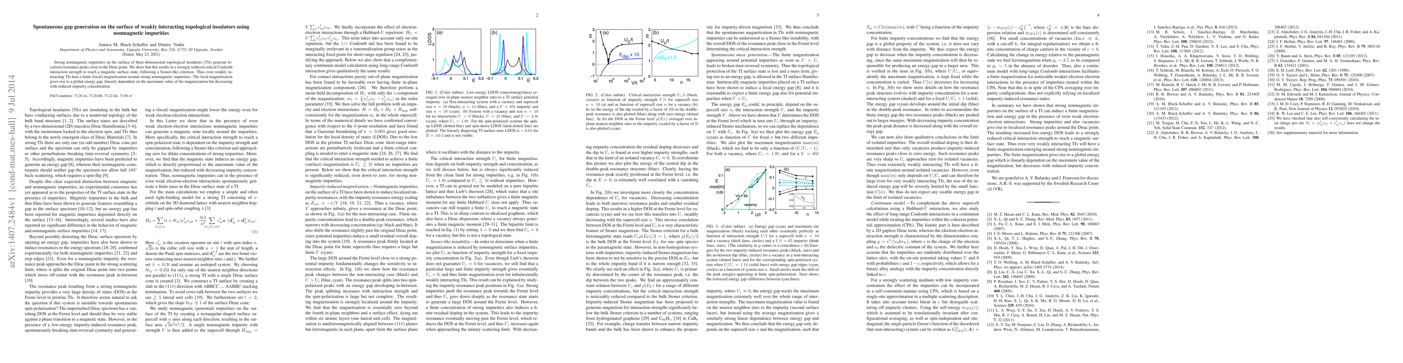 Strong nonmagnetic impurities on topological insulators create localized magnetization, leading to a global energy gap that depends on the maximum value of magnetization.