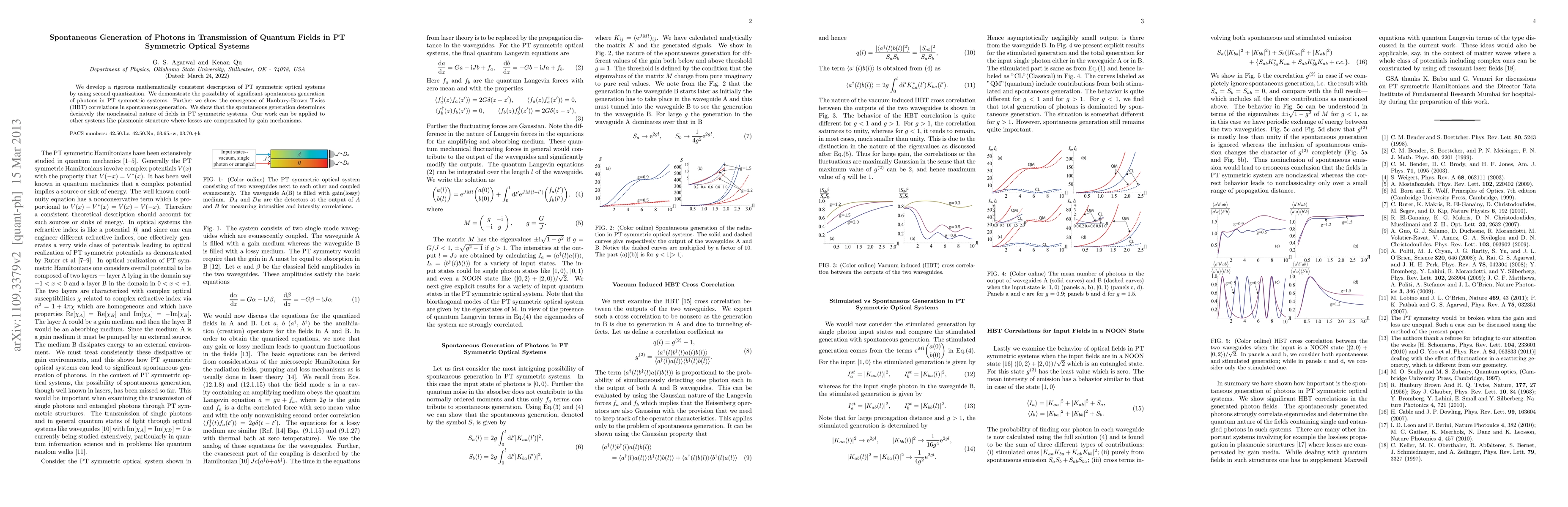 Researchers demonstrate that PT symmetric optical systems can spontaneously generate photons, leading to nonclassical field behavior and Hanbury-Brown Twiss correlations.