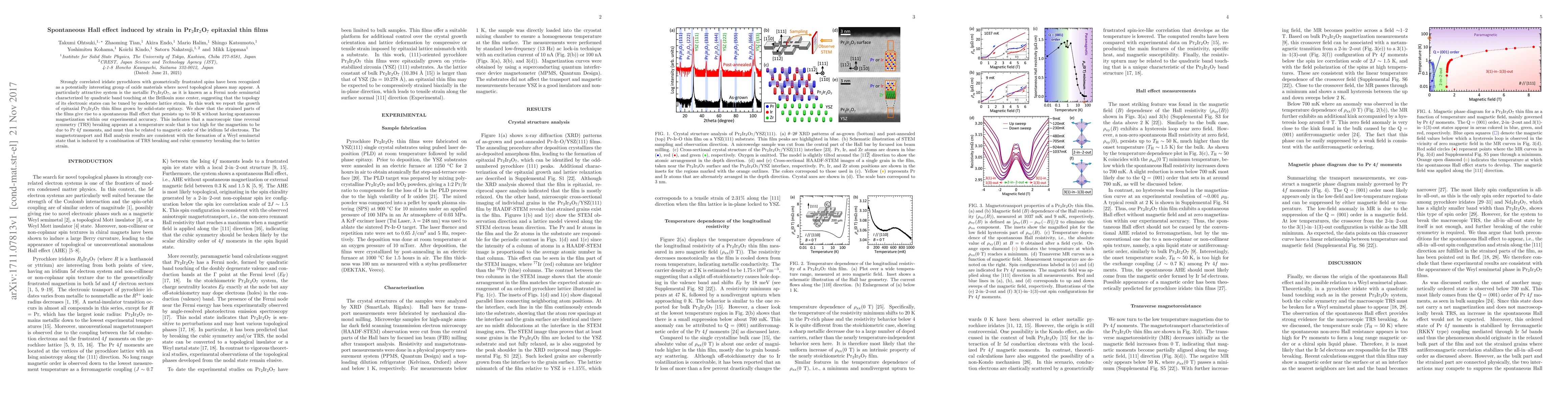 Researchers created epitaxial thin films of Pr$_2$Ir$_2$O$_7$, finding that strained parts induce a spontaneous Hall effect up to 50 K without magnetization, suggesting iridium electrons' magnetic order is responsible.