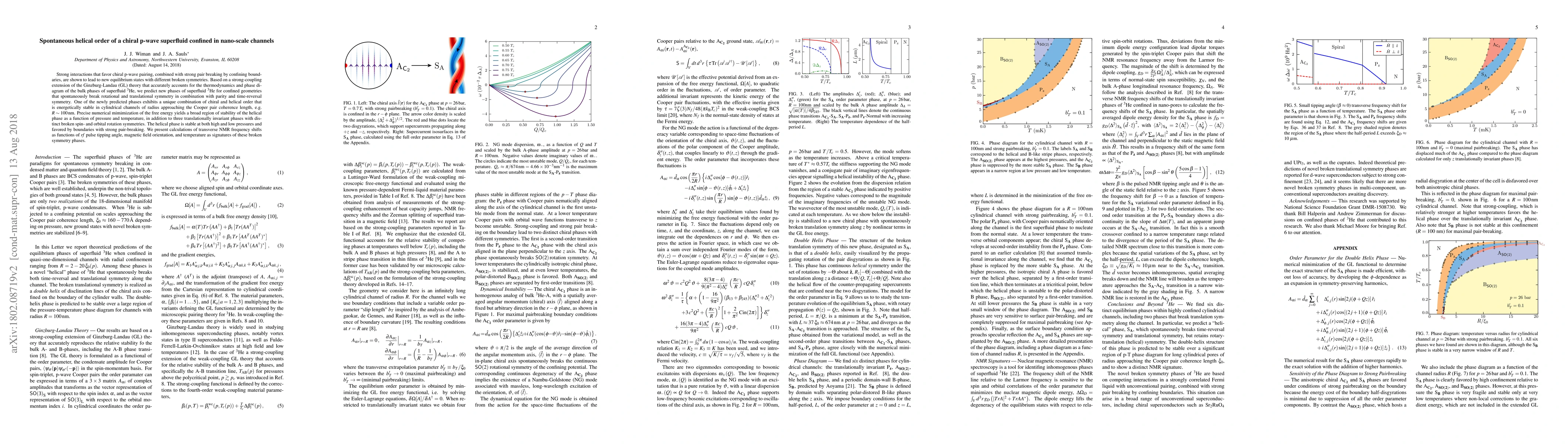 Strong interactions that favor chiral p-wave pairing, combined with strong pair breaking by confining boundaries, are shown to lead to new equilibrium states with different broken symmetries. Based on a strong-coupling Ginzburg-Landau (GL) theory that accurately accounts for the thermodynamics and phase diagram of the bulk phases of superfluid $^3$He, we predict new phases of superfluid $^3$He for confined geometries that spontaneously break rotational and translational symmetry in combination with parity and time-reversal symmetry. One of the newly predicted phases exhibits a unique combination of chiral and helical order that is energetically stable in cylindrical channels of radius approaching the Cooper pair coherence length, e.g. $R\sim 100\,\mbox{nm}$. Precise numerical mimimization of the GL free energy yields a broad region of stability of the helical phase as a function of pressure and temperature, in addition to three translationally invariant phases with distinct broken spin- and orbital rotation symmetries. The helical phase is stable at both high and low pressures and favored by boundaries with strong pair-breaking. We present calculations of transverse NMR frequency shifts as functions of rf pulse tipping angle, magnetic field orientation, and temperature as signatures of these broken symmetry phases.