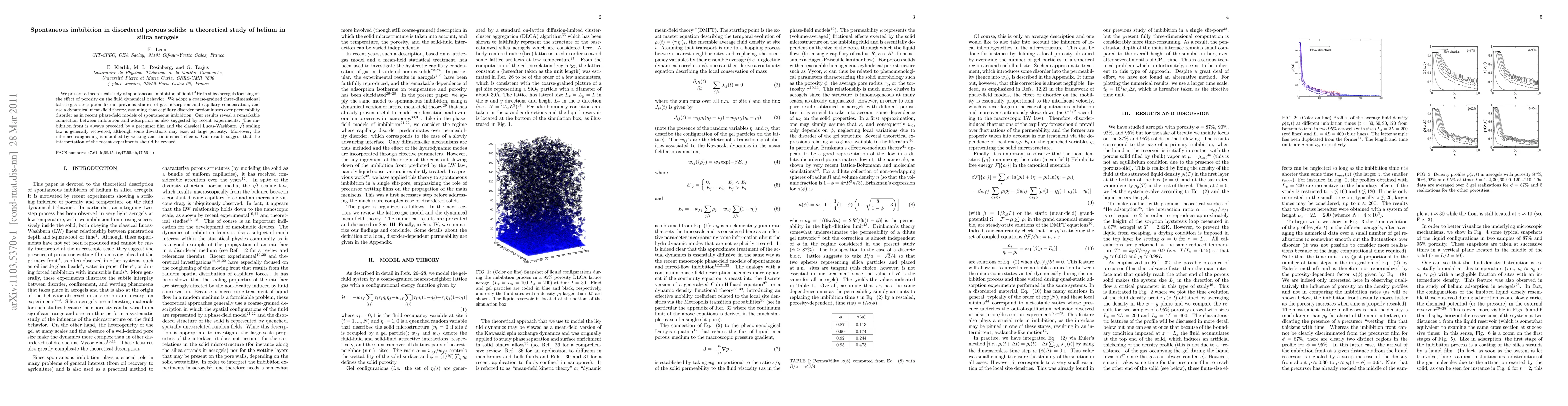 We present a theoretical study of spontaneous imbibition of liquid 4He in silica aerogels focusing on the effect of porosity on the fluid dynamical behavior. We adopt a coarse-grained three-dimensional lattice-gas description like in previous studies of gas adsorption and capillary condensation, and use a dynamical mean-field theory, assuming that capillary disorder predominates over permeability disorder as in recent phase-field models of spontaneous imbibition. Our results reveal a remarkable connection between imbibition and adsorption as also suggested by recent experiments. The imbibition front is always preceded by a precursor film and the classical Lucas-Washburn scaling law is generally recovered, although some deviations may exist at large porosity. Moreover, the interface roughening is modified by wetting and confinement effects. Our results suggest that the interpretation of the recent experiments should be revised.