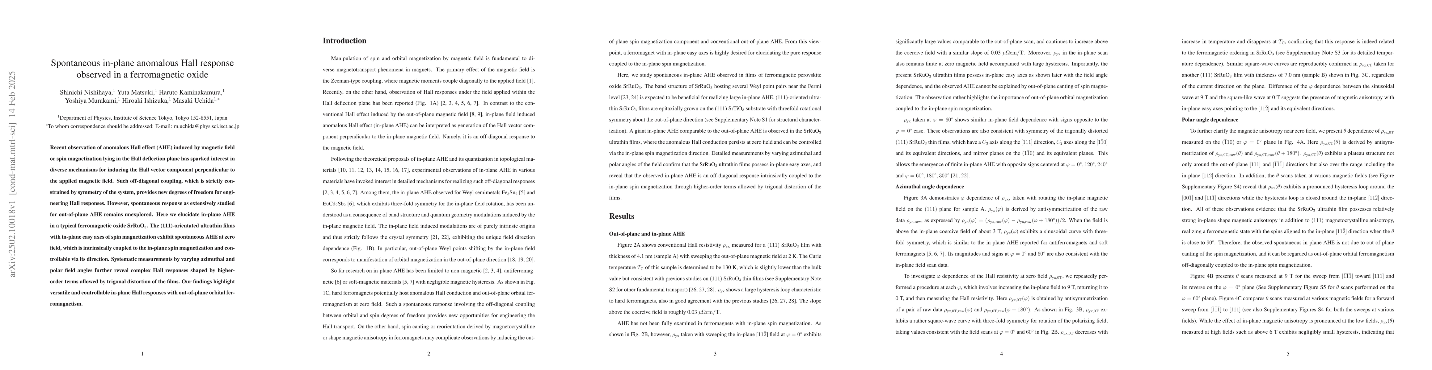 The paper demonstrates the observation of spontaneous in-plane anomalous Hall effect in a typical ferromagnetic oxide SrRuO3, revealing its intrinsic coupling with in-plane spin magnetization and controllability through its direction.