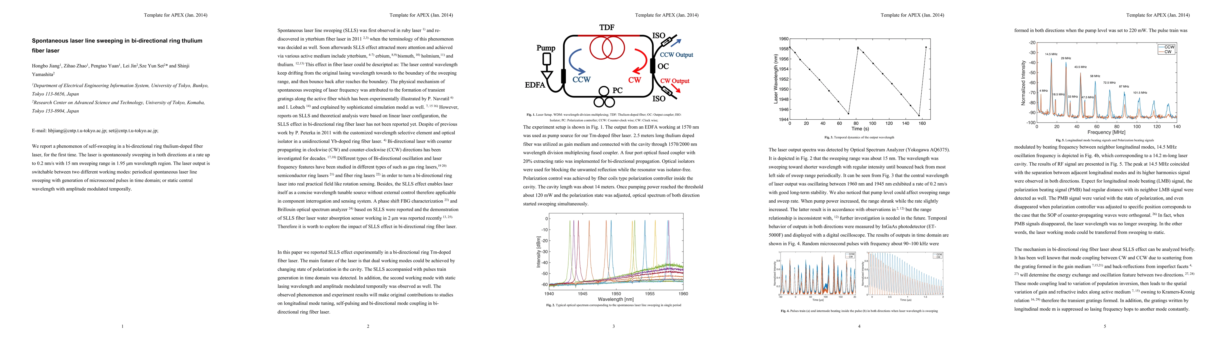 Researchers discovered self-sweeping in a thulium fiber laser, sweeping at 0.2 nm/s with a 15nm range, enabling switchable operation between periodic pulses and static central wavelength modes.