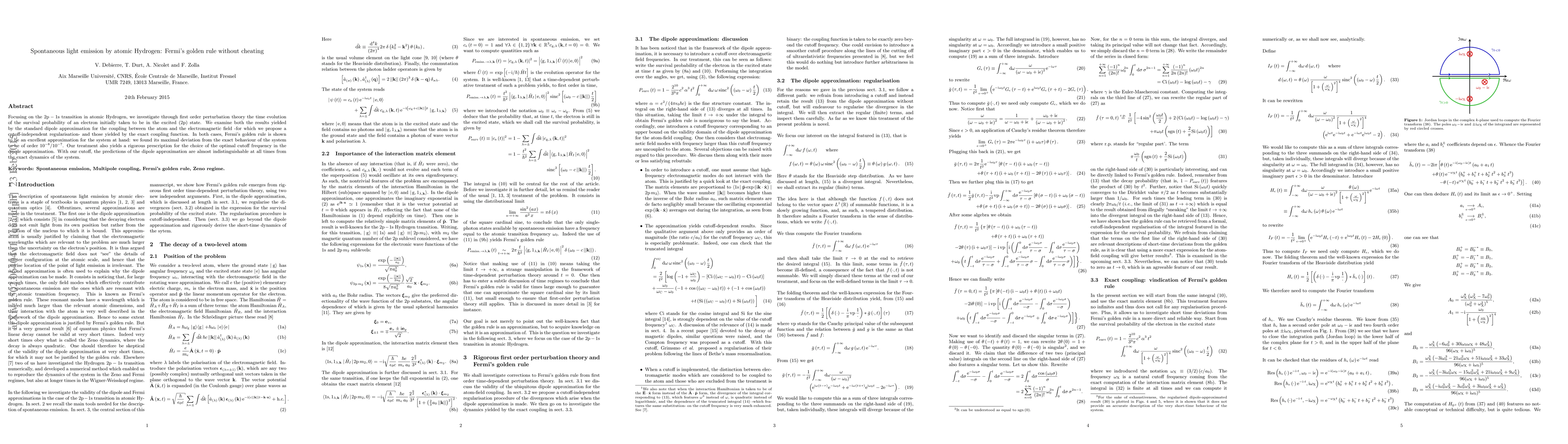 Researchers studied spontaneous light emission in atomic Hydrogen using first-order perturbation theory, finding that Fermi's golden rule is an excellent approximation with minimal deviation from the exact behavior.