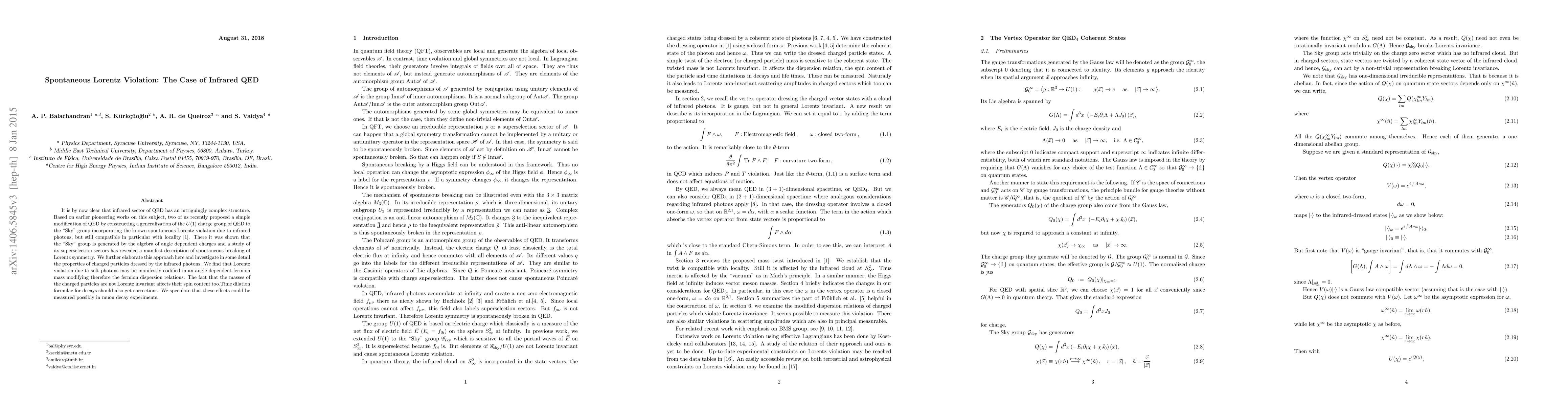 It is by now clear that infrared sector of QED has an intriguingly complex structure. Based on earlier pioneering works on this subject, two of us recently proposed a simple modification of QED by constructing a generalization of the $U(1)$ charge group of QED to the "Sky" group incorporating the known spontaneous Lorentz violation due to infrared photons, but still compatible in particular with locality. There it was shown that the "Sky" group is generated by the algebra of angle dependent charges and a study of its superselection sectors has revealed a manifest description of spontaneous breaking of Lorentz symmetry. We further elaborate this approach here and investigate in some detail the properties of charged particles dressed by the infrared photons. We find that Lorentz violation due to soft photons may be manifestly codified in an angle dependent fermion mass modifying therefore the fermion dispersion relations. The fact that the masses of the charged particles are not Lorentz invariant affects their spin content too.Time dilation formulae for decays should also get corrections. We speculate that these effects could be measured possibly in muon decay experiments.