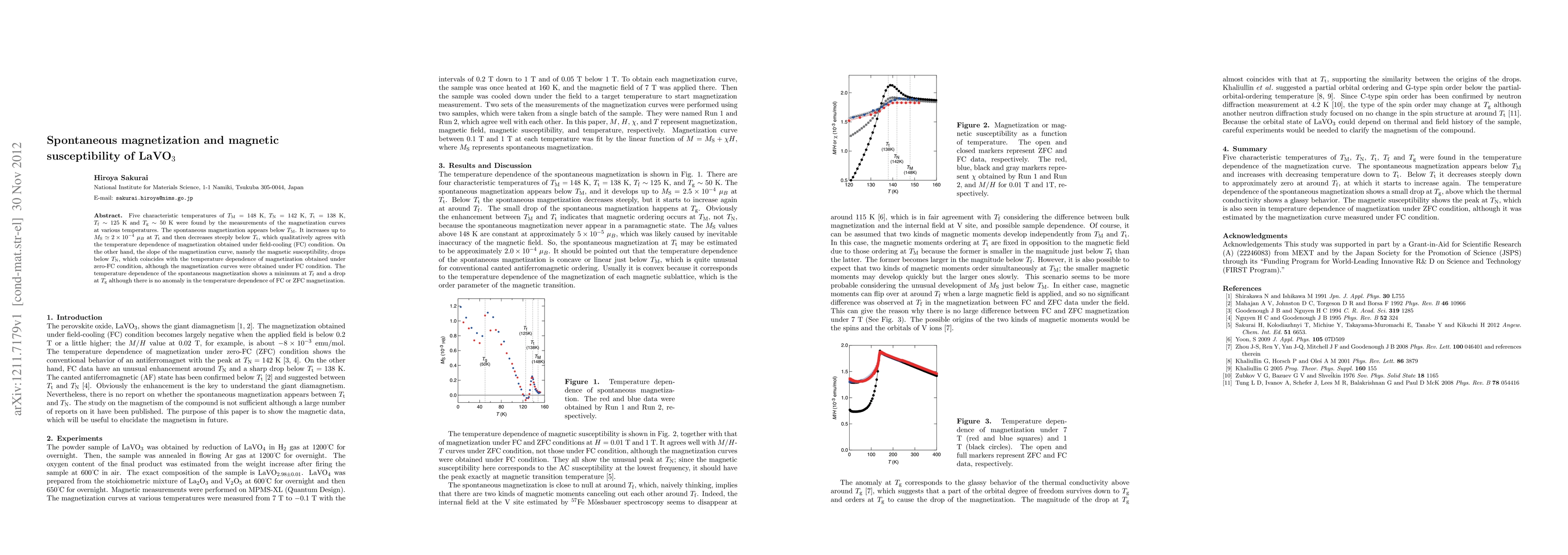 Researchers studied LaVO3's magnetization behavior at various temperatures, finding characteristic temperatures and a minimum in spontaneous magnetization around 125K.
