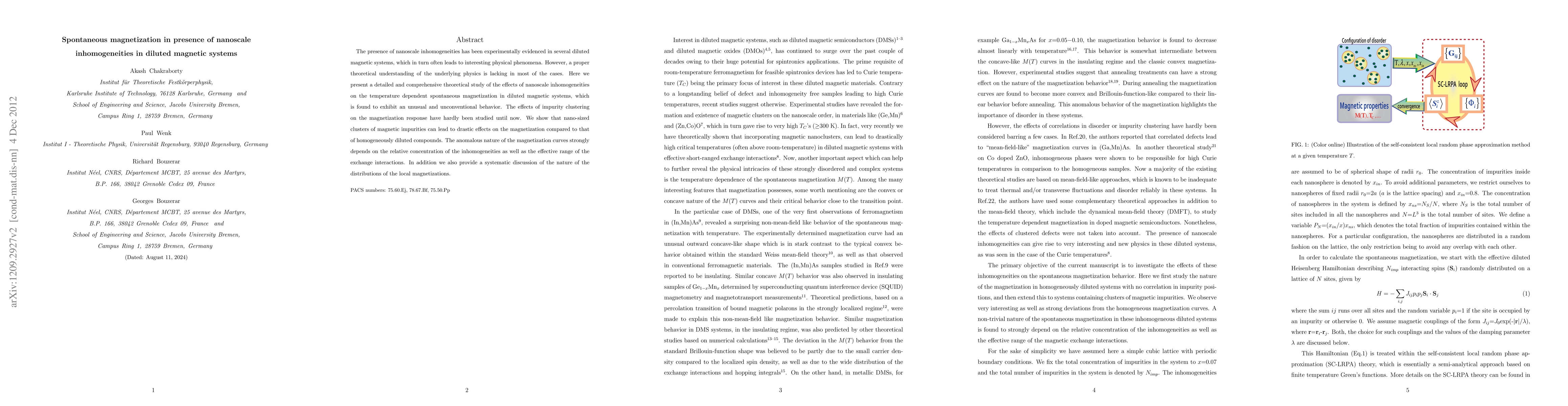 This study explores the impact of nanoscale inhomogeneities on spontaneous magnetization in diluted magnetic systems, revealing unconventional temperature-dependent behavior and significant effects due to impurity clustering. The research highlights the dependency of magnetization anomalies on the concentration of inhomogeneities and the range of exchange interactions.