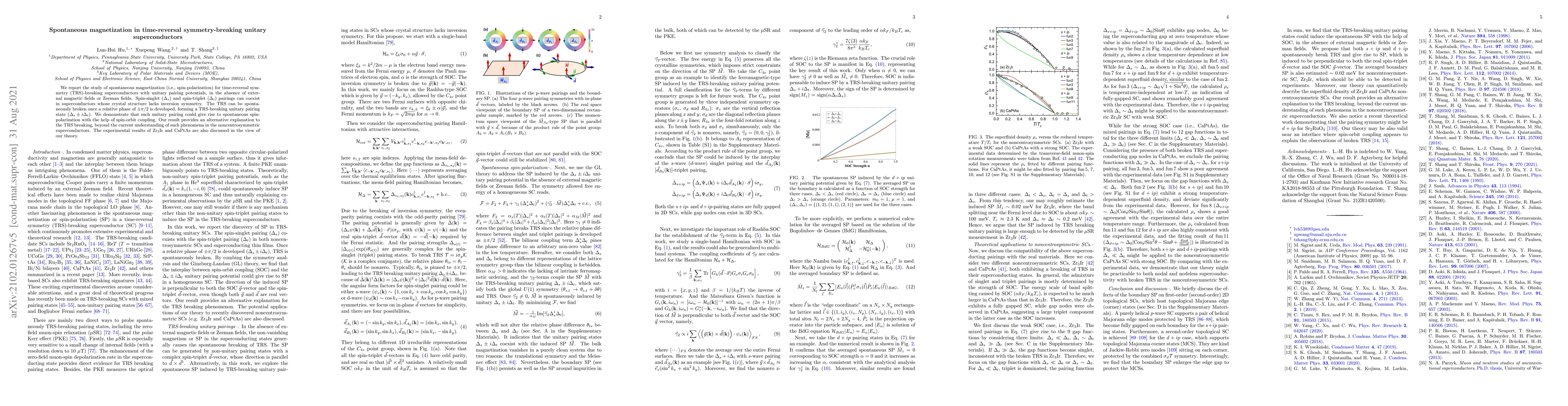 This study investigates spontaneous magnetization in time-reversal symmetry-breaking unitary superconductors without external magnetic fields, showing that spin-orbit coupling can lead to spin-polarization in these systems. The research provides an alternative explanation for TRS breaking in noncentrosymmetric superconductors, supported by experimental data from Zr$_3$Ir and CaPtAs.