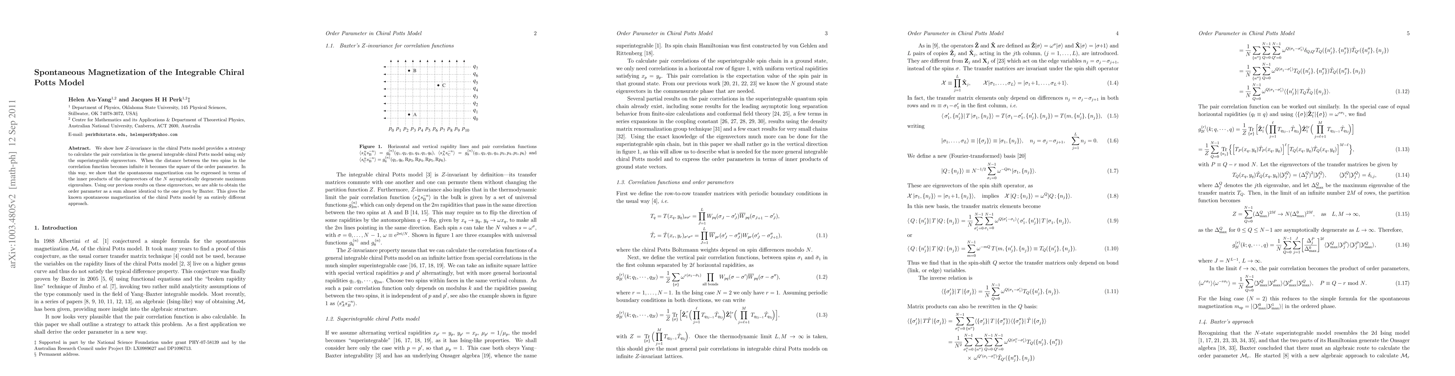 We show how $Z$-invariance in the chiral Potts model provides a strategy to calculate the pair correlation in the general integrable chiral Potts model using only the superintegrable eigenvectors. When the distance between the two spins in the correlation function becomes infinite it becomes the square of the order parameter. In this way, we show that the spontaneous magnetization can be expressed in terms of the inner products of the eigenvectors of the $N$ asymptotically degenerate maximum eigenvalues. Using our previous results on these eigenvectors, we are able to obtain the order parameter as a sum almost identical to the one given by Baxter. This gives the known spontaneous magnetization of the chiral Potts model by an entirely different approach.