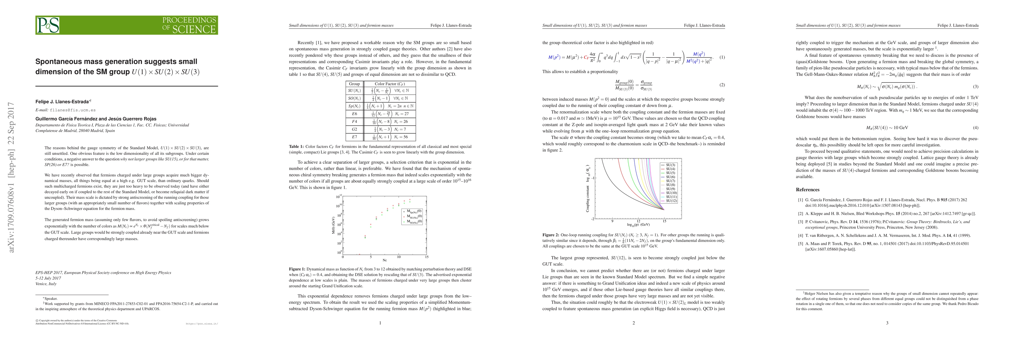 This research proposes that the small dimensionality of the Standard Model's symmetry group (U(1)xSU(2)xSU(3)) could be due to fermions charged under larger groups acquiring significant dynamical masses. These heavy fermions, either decayed early or became dark matter, are a result of strong antiscreening and Dyson-Schwinger equation scaling properties. The fermion mass grows exponentially with the number of colors below the GUT scale, making large groups strongly coupled near the GUT scale with heavy fermion masses.