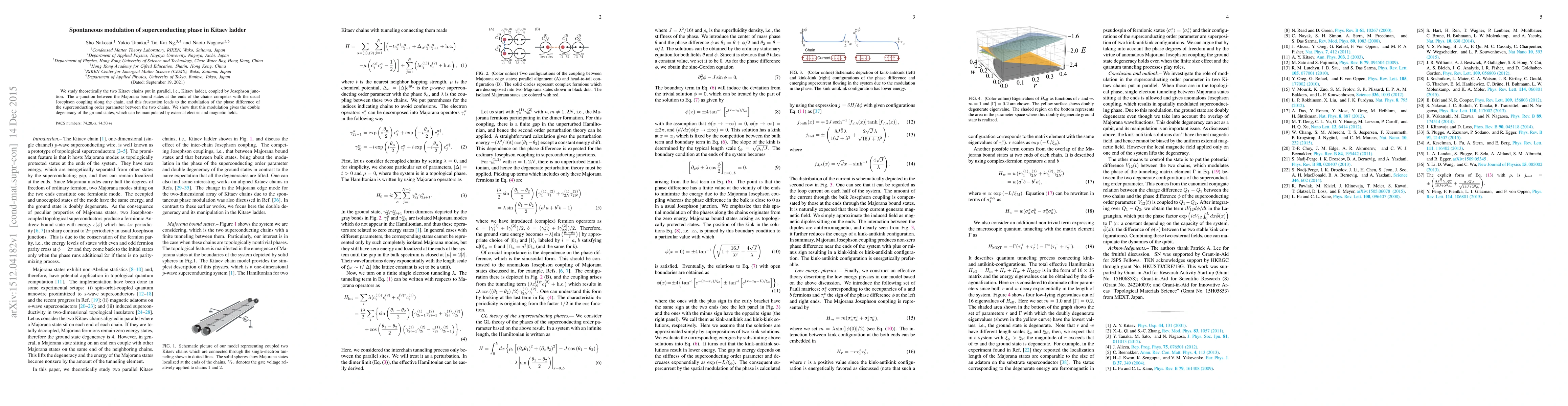 We study theoretically the two Kitaev chains put in parallel, i.e., Kitaev ladder, coupled by Josephson junction. The $\pi$-junction between the Majorana bound states at the ends of the chains competes with the usual Josephson coupling along the chain, and this frustration leads to the modulation of the phase difference of the superconducting order parameter between the two chains. We show that this modulation gives the double degeneracy of the ground states, which can be manipulated by external electric and magnetic fields.