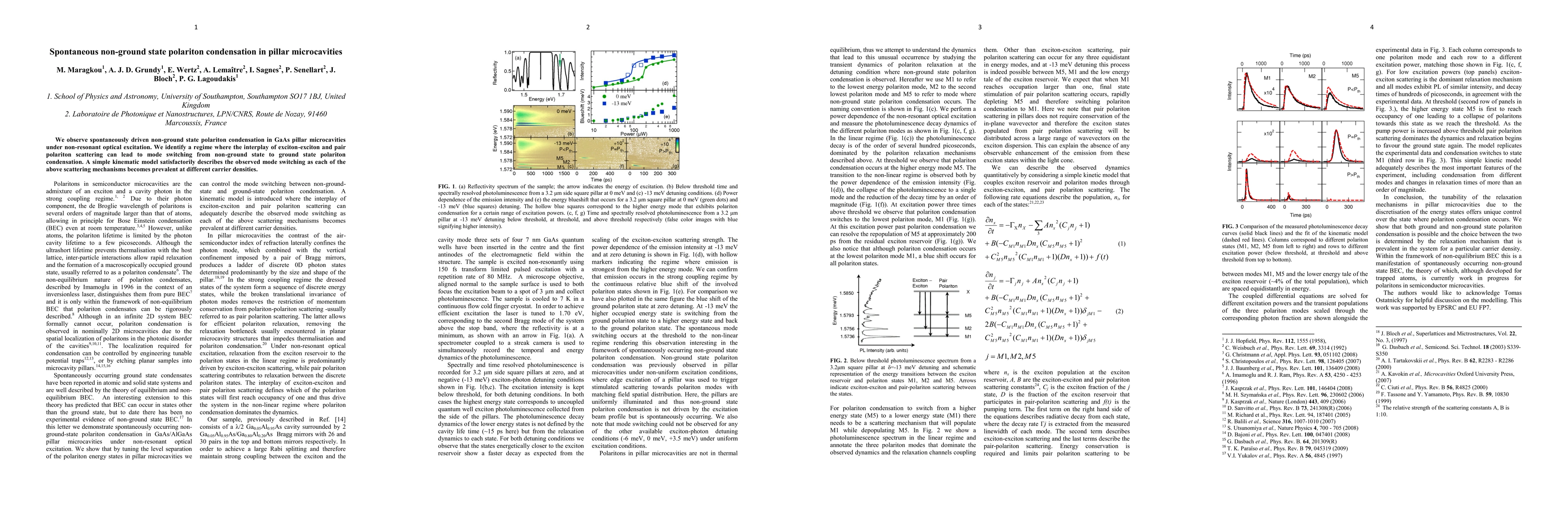This research observes spontaneous polariton condensation in GaAs pillar microcavities under non-resonant optical excitation, identifying a regime where exciton-exciton and pair polariton scattering can switch condensation modes from non-ground to ground state. The findings are well described by a kinematic model correlating different scattering mechanisms with varying carrier densities.