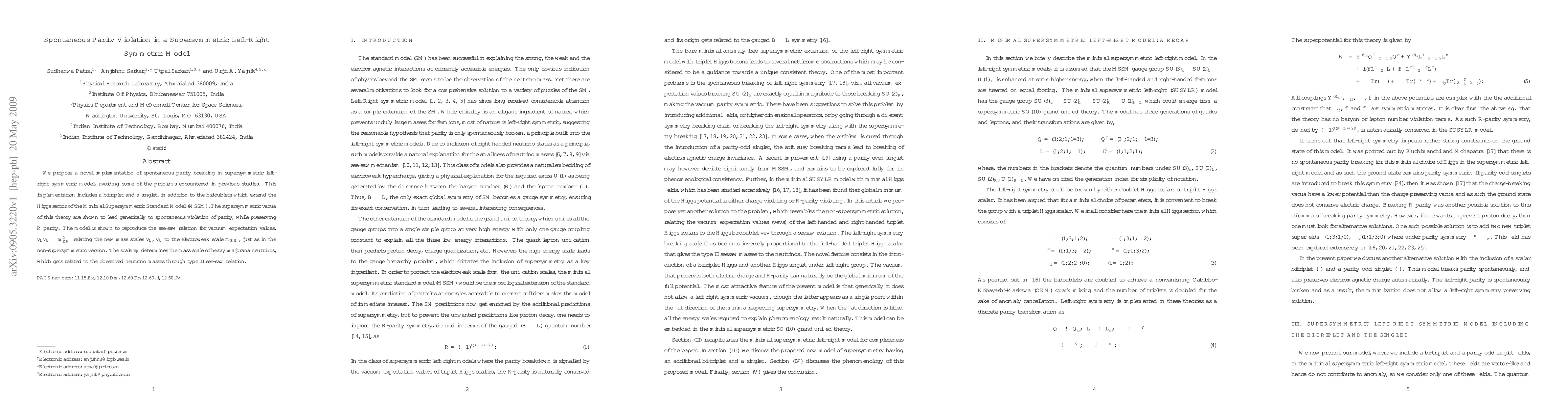 This paper proposes a new supersymmetric left-right symmetric model that achieves spontaneous parity violation using a bitriplet, singlet, and bidoublet extensions to the Higgs sector. The model preserves R parity and reproduces the see-saw relation, linking heavy Majorana neutrino masses to the observed neutrino masses.