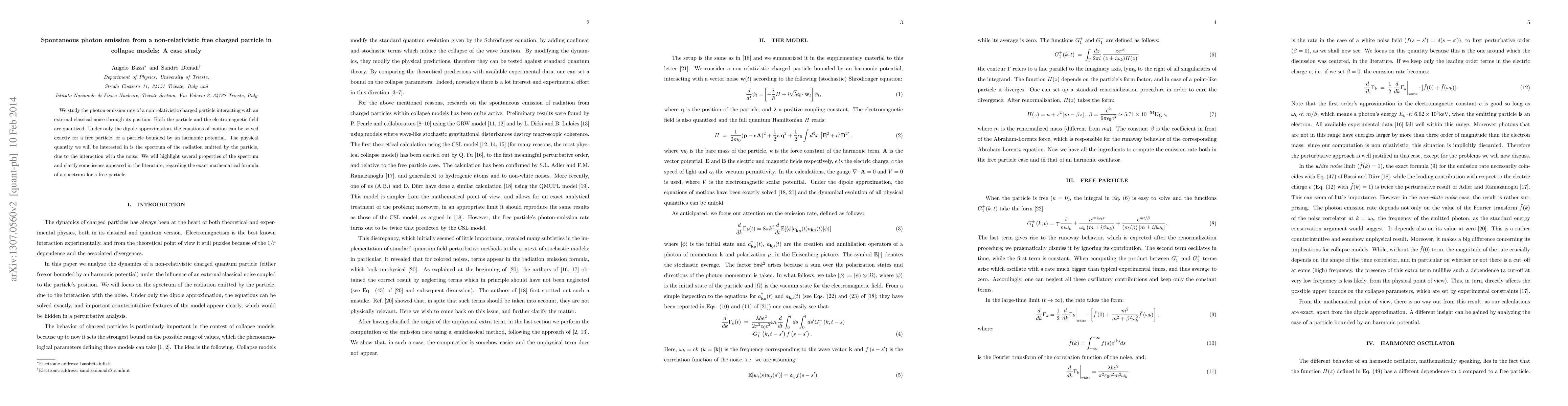 We study the photon emission rate of a non relativistic charged particle interacting with an external classical noise through its position. Both the particle and the electromagnetic field are quantized. Under only the dipole approximation, the equations of motion can be solved exactly for a free particle, or a particle bounded by an harmonic potential. The physical quantity we will be interested in is the spectrum of the radiation emitted by the particle, due to the interaction with the noise. We will highlight several properties of the spectrum and clarify some issues appeared in the literature, regarding the exact mathematical formula of a spectrum for a free particle.
