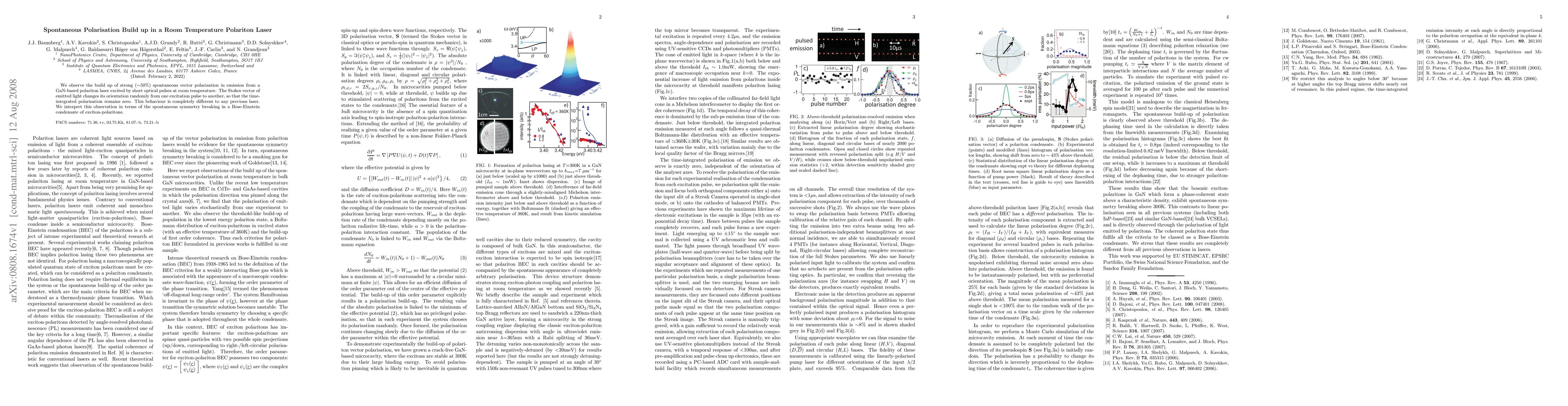 We observe the build up of strong (~50%) spontaneous vector polarisation in emission from a GaN-based polariton laser excited by short optical pulses at room temperature. The Stokes vector of emitted light changes its orientation randomly from one excitation pulse to another, so that the time-integrated polarisation remains zero. This behaviour is completely different to any previous laser. We interpret this observation in terms of the spontaneous symmetry breaking in a Bose-Einstein condensate of exciton-polaritons.