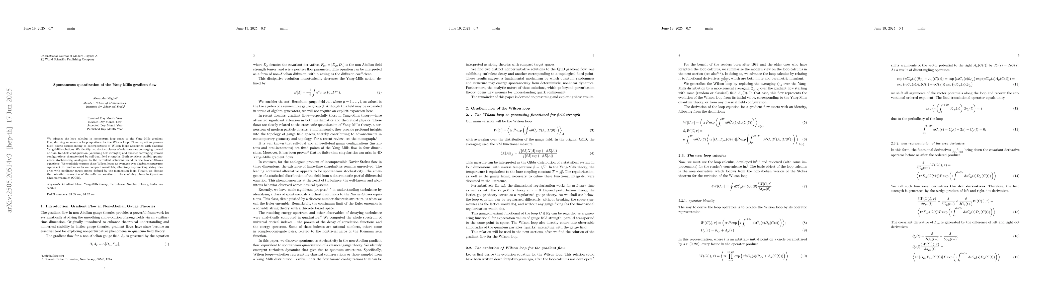 We apply loop calculus in momentum loop space to the Yang-Mills gradient flow, deriving momentum loop equations for the Wilson loop. These equations possess fixed points corresponding to superpositions of Wilson loops associated with classical Yang-Mills solutions. We identify two distinct classes of solutions: one converging toward a trivial free-field configuration (vanishing field strength) and another converging toward configurations characterized by self-dual field strengths. Both solutions exhibit spontaneous stochasticity, analogous to the turbulent solutions found in the Navier-Stokes equations. We explicitly express these Wilson loops as averages over algebraic structures equivalent to random walks on compact manifolds, effectively representing string theories with nonlinear target spaces defined by the momentum loop. Finally, we discuss the potential connection of the self-dual solution to the confining phase in Quantum Chromodynamics (QCD).