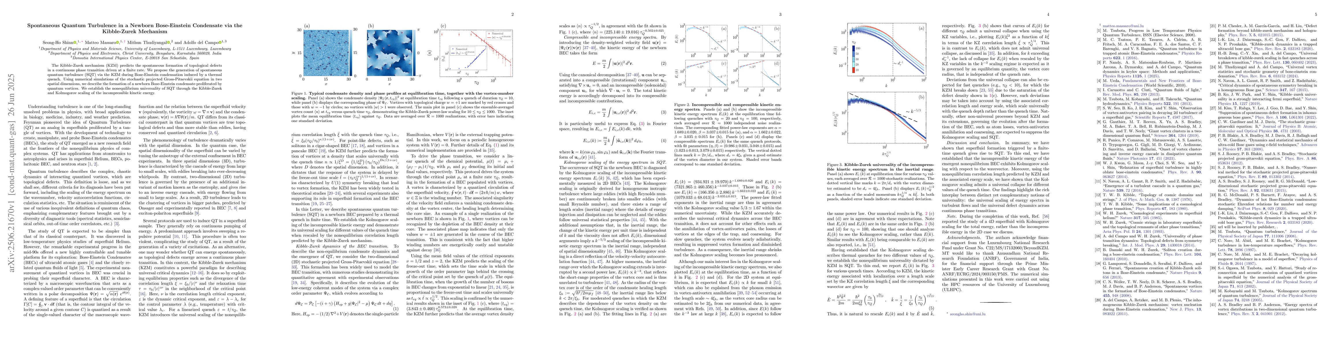 This research proposes the generation of spontaneous quantum turbulence (SQT) in newborn Bose-Einstein condensates via the Kibble-Zurek Mechanism during a thermal quench, demonstrated through numerical simulations. The study establishes the nonequilibrium universality of SQT, evidenced by Kibble-Zurek and Kolmogorov scaling of incompressible kinetic energy.