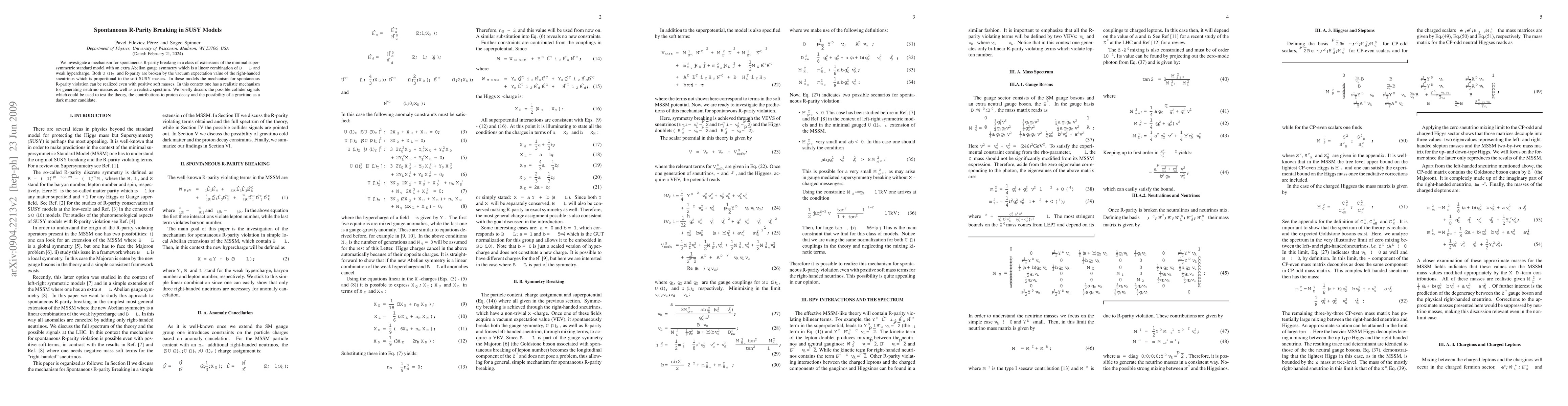 This paper explores a mechanism for spontaneous R-parity breaking in extended SUSY models featuring an extra Abelian gauge symmetry. The vacuum expectation value of right-handed sneutrinos induces both U(1)_X and R-parity breaking, enabling realistic neutrino mass generation and a viable dark matter candidate.