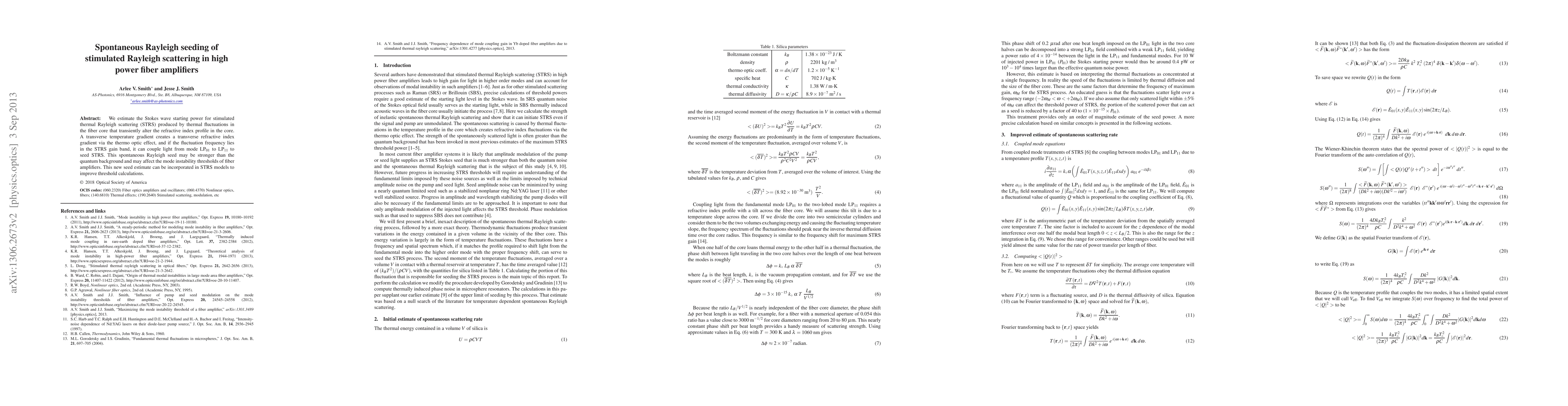 This paper estimates the starting power for spontaneous Rayleigh seeding of stimulated Rayleigh scattering in high power fiber amplifiers, showing that thermal fluctuations can create a stronger seed than quantum background noise, potentially impacting amplifier mode instability thresholds. The findings can enhance models for calculating scattering thresholds.